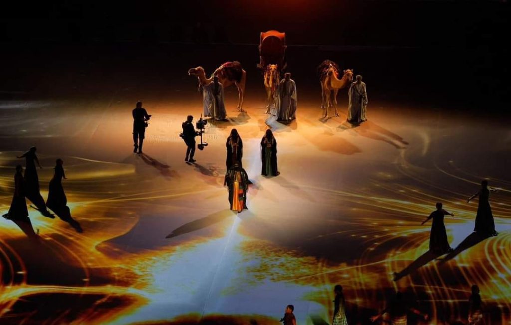 وبدأ حفل الافتتاح بمجموعة من الاستعراضات الراقصة التي أشعلت حماس الجماهير سبقها فقرة غنائية من التراث في بداية الحفل.