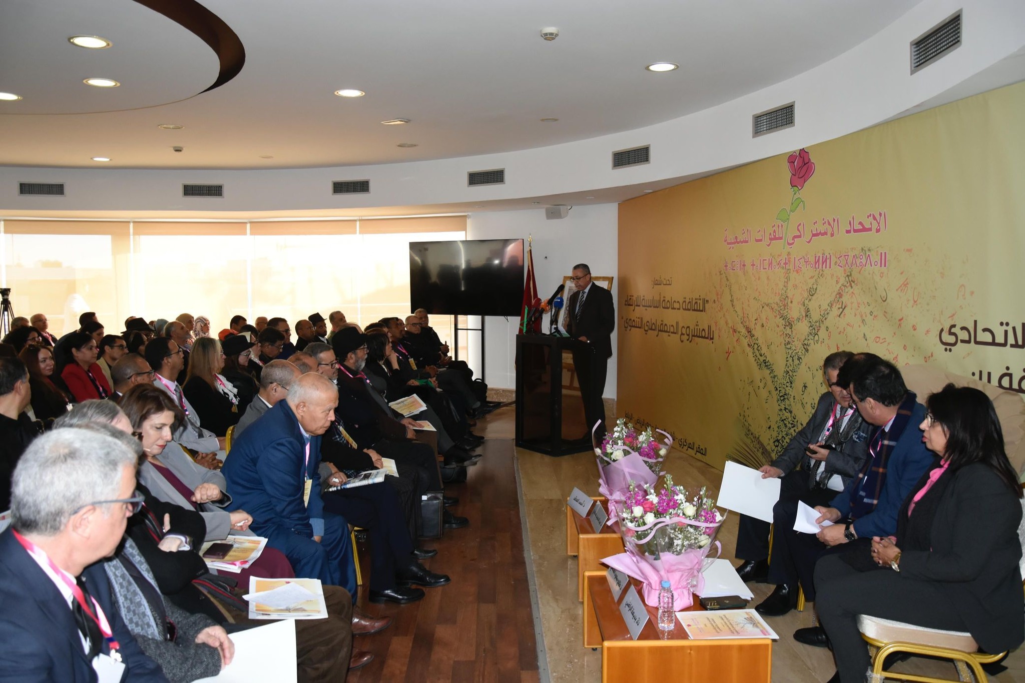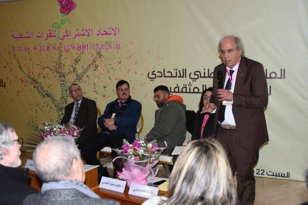 وأوضح ذات المسؤول الحزبي، “إن الاتحاد الاشتراكي للقوات الشعبية، منذ تأسيسه، شكل مثقفو حزب الاستقلال، إلى جانب أعضاء المقاومة وجيش التحرير والطبقة العاملة، أحد الأعمدة الأساسية في نشأة حزب يساري تقدمي، دافع دوما عن ضرورة إفراز قطب ثقافي منتصر للإبداع والفكر، قادر على ترجمة مبادئ الديمقراطية والحداثة والحرية عبر تفعيل المقتضيات الدستورية، واحترام التعددية والتنوع، وترسيخ حس المواطنة والانتماء الكوني. كنا وما زلنا حريصين على إرساء منظومة ثقافية شاملة كفيلة بتحصين الهوية والذات الوطنية وتقوية التفاعل الإيجابي مع الحضارات الإنسانية المختلفة، عبر خلق دينامية مجتمعية رافضة للتفكير المنغلق والعدمي ومنتصرة للفكر المبدع والنقدي”.