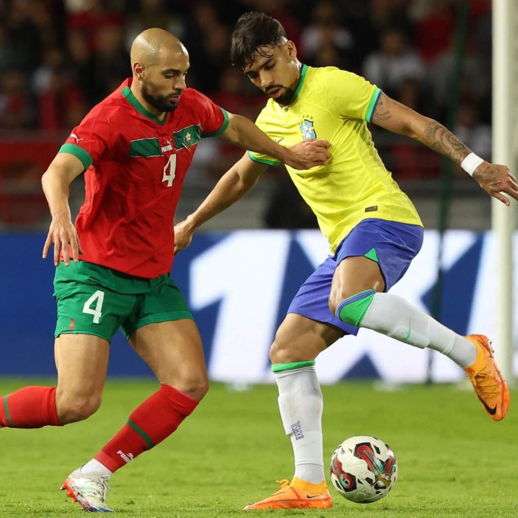 (كش بريس/خاص) ـ خاض المنتخب المغربي لكرة القدم، مباراة ودية ساخنة مع نظيره البرازيلي، على أرضية ملعب طنجة الدولي، حيث فاز بتاكتيكية مميزة وفاعلة من قبل المدرب الملهم وليد الركراكي، (فاز )بهدفين لواحد .