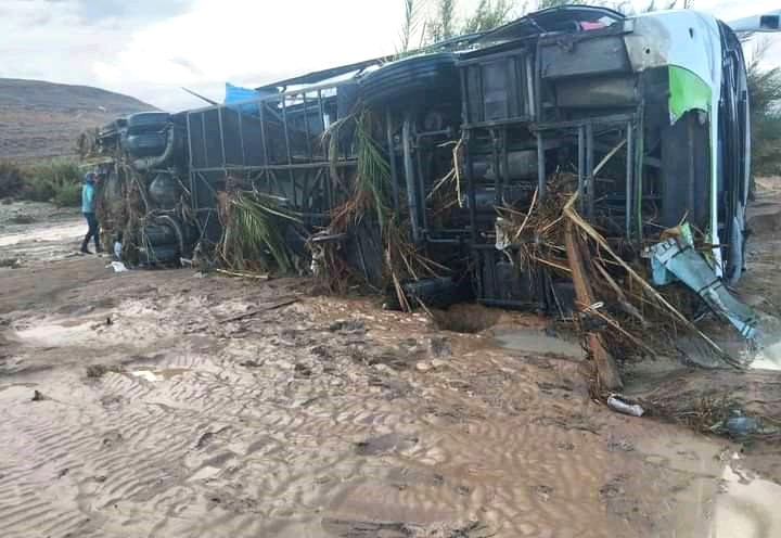 وفي مشهد درامي صعب، نقلت وسائل التواصل الاجتماعي صورا لحافلة قادمة من طانطان، جرفتها السيول، وقد استغاث ركابها بعناصر الشرطة والوقاية المدنية، حيث نجح الأخيرون في إنقاذهم وإجلائهم إلى مناطق آمنة.