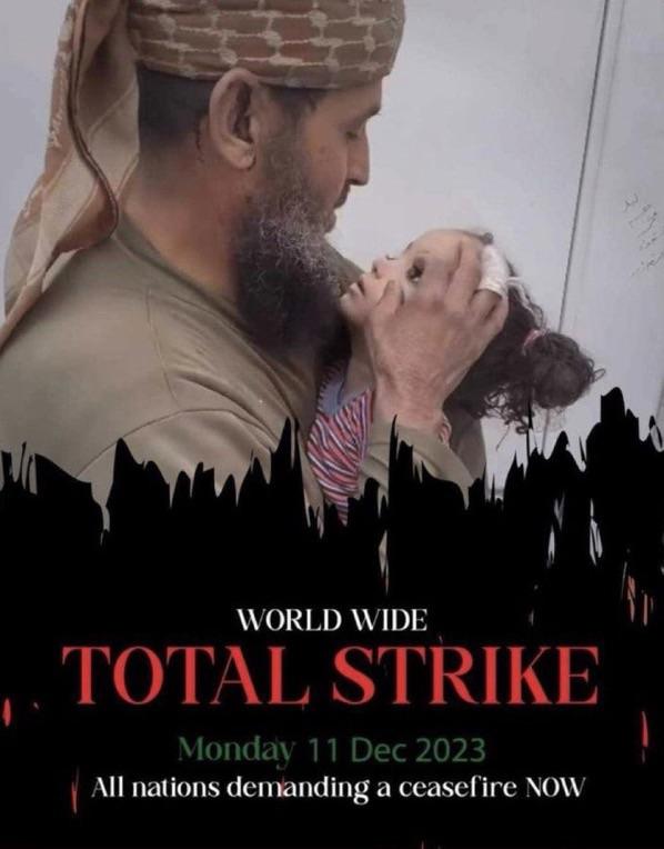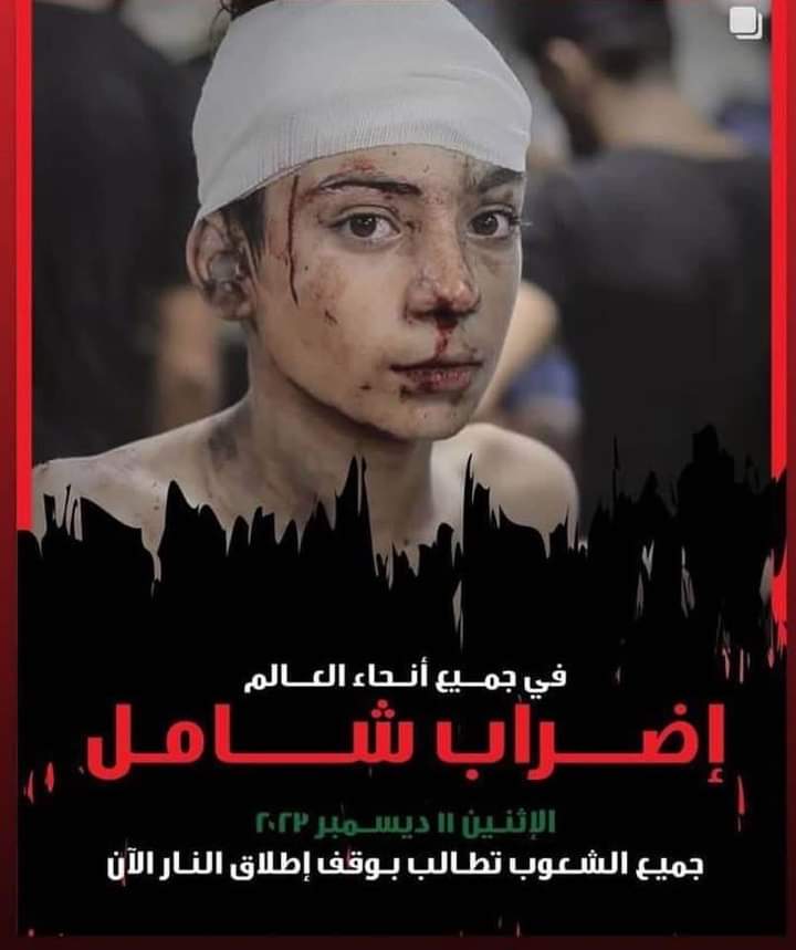 أطلقت القوى الوطنية والإسلامية في رام الله والبيرة في الأراضي الفلسطينية، نداء دوليا ، بالإعلان عن إضراب شامل لكافة مناحي الحياة يوم الإثنين المقبل، وذلك ضمن حراك عالمي يدعو لاضراب حول العالم، للمطالبة بوقف العدوان على قطاع غزة، وتضامنا مع الشعب الفلسطيني.