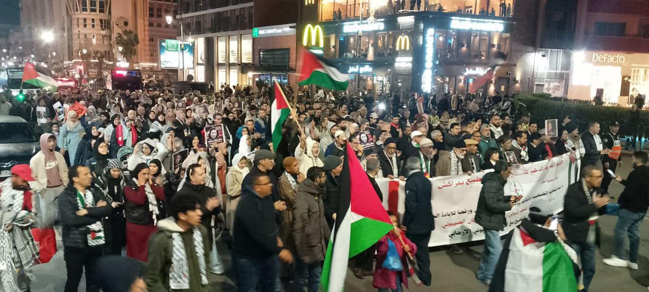 ودعا الائتلاف المغاربة والقوى الداعمة للشعب الفلسطيني ومقاومته والمناهضة للتطبيع، على امتداد خريطة البلاد، إلى التعبير بأصوات عالية وحشود غفيرة عن غضب الشعب المغربي وقواه المناضلة، على جرائم الاحتلال الصهيوني ضد الفلسطينيين، والعدوان الأمريكي على الشعب الإيراني.
