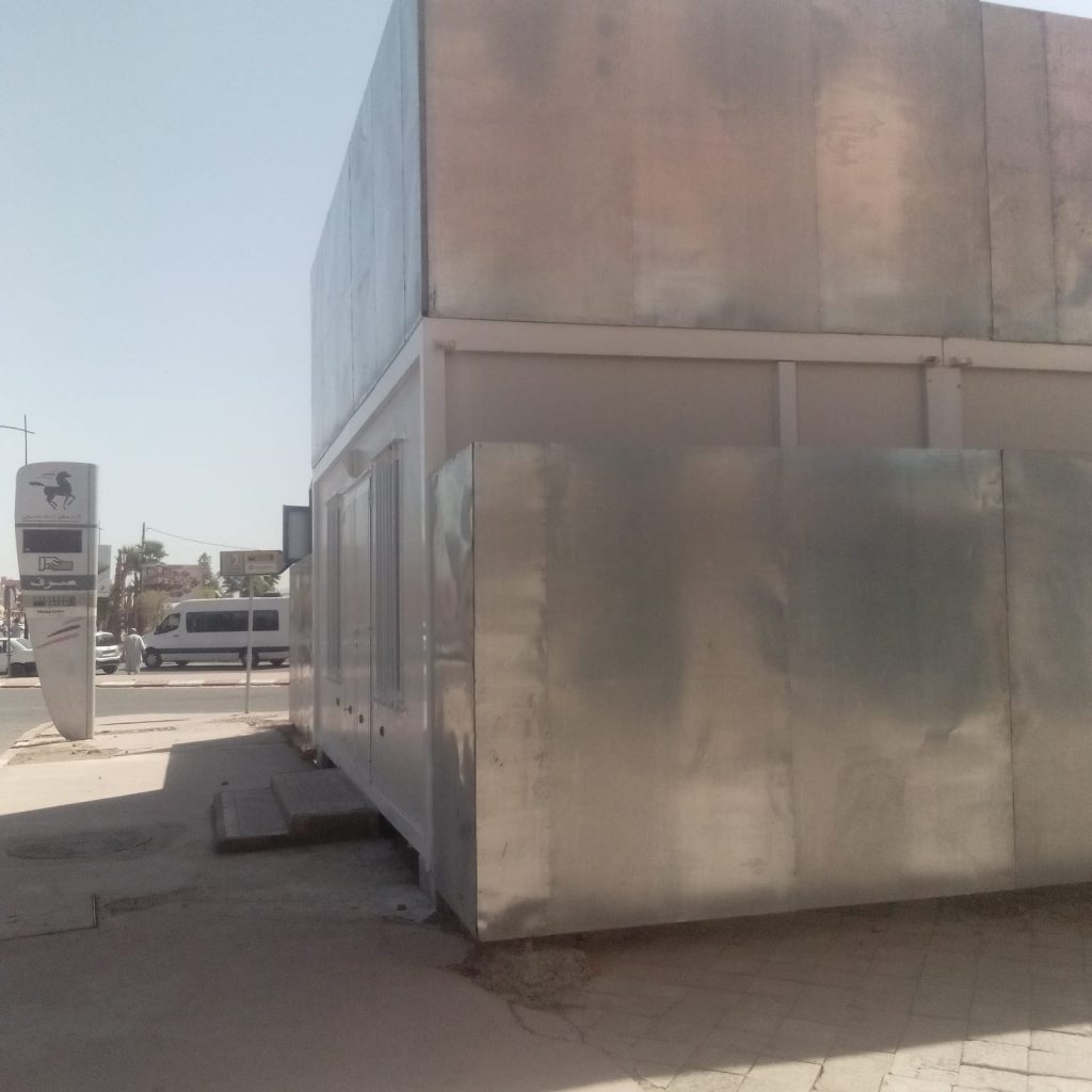 (كش بريس/ع ل) ـ فوجئت ساكنة المجمع السكني برج المنارة بحي المحاميد9 مراكش، باستنباث “كشك”، وهو عبارة عن مكتب بيع خاص بالسكن، في الملكية المشتركة التابعة للمجمع السكني المذكور ، والكائن بشارع عبد الله ابراهيم ، بالمحاذاة مع وكالة لأحد الأبناك.
