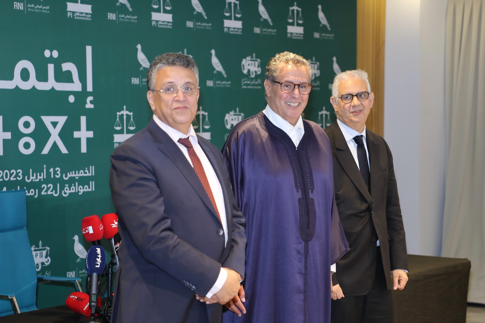ولفت الأخير الانتباه، إلى أن “الأغلبية البرلمانية متماسكة بدورها وهي تتابع عمل الحكومة، كما أنها تسندها دون شروط في تنزيل برنامجها الحكومي والتزاماتها مع المواطنين، لاسيما الدولة الاجتماعية عبر قطاعات الصحة والتعليم والتشغيل والاستثمار”، مشددا في الوقت ذاته، على أن “الظروف الصعبة والمشاكل المطروحة لم تحُل دون تعبئة الحكومة لتنزيل برنامجها الحكومي على الوجه المطلوب، والوفاء بالتزاماتها مع المواطنين”. وزاد الأمين العام للبام عبد اللطيف وهبي على ذلك بالقول :” “كل ما تسمعونه منا نحنُ الثلاثة هو الحقيقة، وما خارجه ليس صحيحاً؛ بل أؤكد لكم أننا أقوى مما كنا في الماضي، وسنستمر في خدمة البلد بهذه الحكومة، لأن ذلك مفخرة لنا ومصدر اعتزاز”. في حين لم يخرج نزار بركة الأمين العام لحزب الاستقلال عن تصريحات زملائه : “نحن متشبثون بالبرنامج الحكومي وبالتزاماتنا مع المواطنين رغم الصعوبات. هذه الأغلبية منسجمة ولديها إرادة قوية لمواجهة الإشكاليات”، وس “نعمل على مواجهة الظرفية وعلى استدراك التأخر الحاصل في المشاريع، وأتينا بمقاربة تحمل حلولا مهيكلة لخدمة المواطنين، والتخفيف من عبء التضخم الناجم عن الأزمات الخارجية والجفاف”.