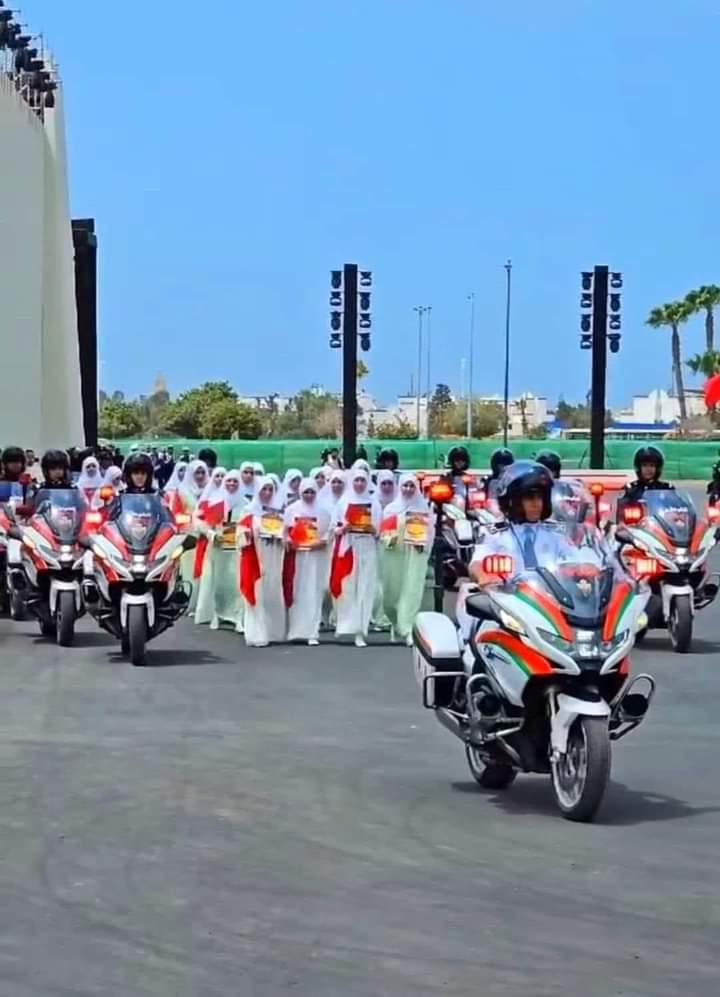 وانتشرت صور التكريم بشكل لافت على مواقع التواصل الاجتماعي، حيث تستعرض التلميذات الحافظات لكتاب الله، أمام حضور رسمي وشعبي، وبلباس أبيض يرمز إلى الطهارة والعفة وقدسية اللحظة، مرفقين برجال الأمن الوطني الراكبين على دراجاتهم النارية من النوع الملكي، وهم يحيطون بالمسار في اتجاه منصة التكريم، (يستعرضن) المصاحف والورود ، ويعلو وجوههن الفرح ونشوة النجاح.