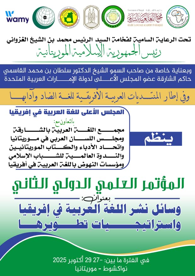 وبينما ما تزال أصداء التتويج المغربي تتردد في الأوساط الفكرية والتربوية، يشارك وفد عن الائتلاف في المؤتمر العلمي الثاني للمجلس الأعلى للغة العربية في إفريقيا، المنعقد ما بين 26 و30 أكتوبر الجاري، والمنظم من طرف مجمع اللغة العربية بالشارقة والمجلس الأعلى للغة العربية بإفريقيا ومجلس اللسان العربي بموريتانيا، تحت عنوان: «وسائل نشر اللغة العربية في إفريقيا واستراتيجيات تطويرها».