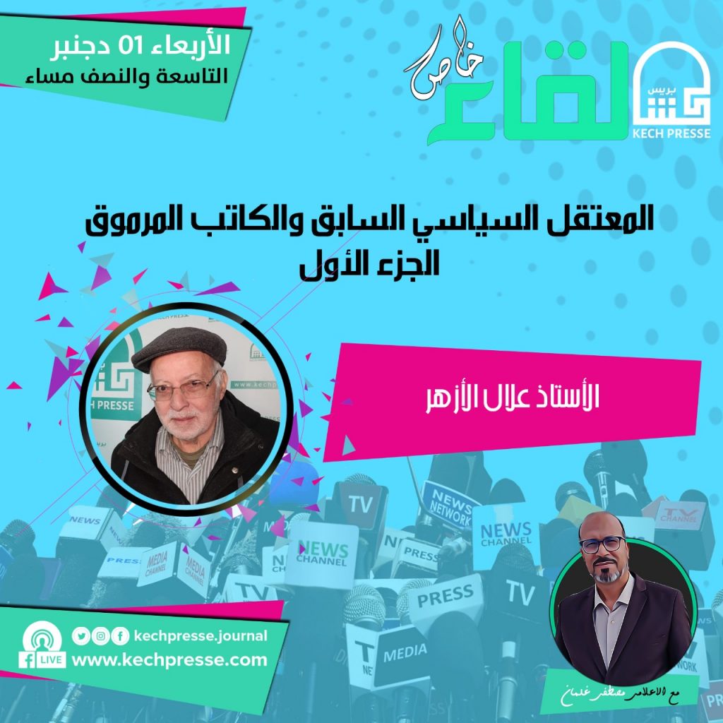 يلتقي جمهور “كش بريس” مع الجزء الأول من الحلقة الجديدة من برنامج “لقاء خاص”، الذي يستضيف الكاتب والمناضل السياسي الكبير الأستاذ علال الأزهر، يومه الأربعاء 30 نونبر الساعة التاسعة والنصف 21,30 مساء