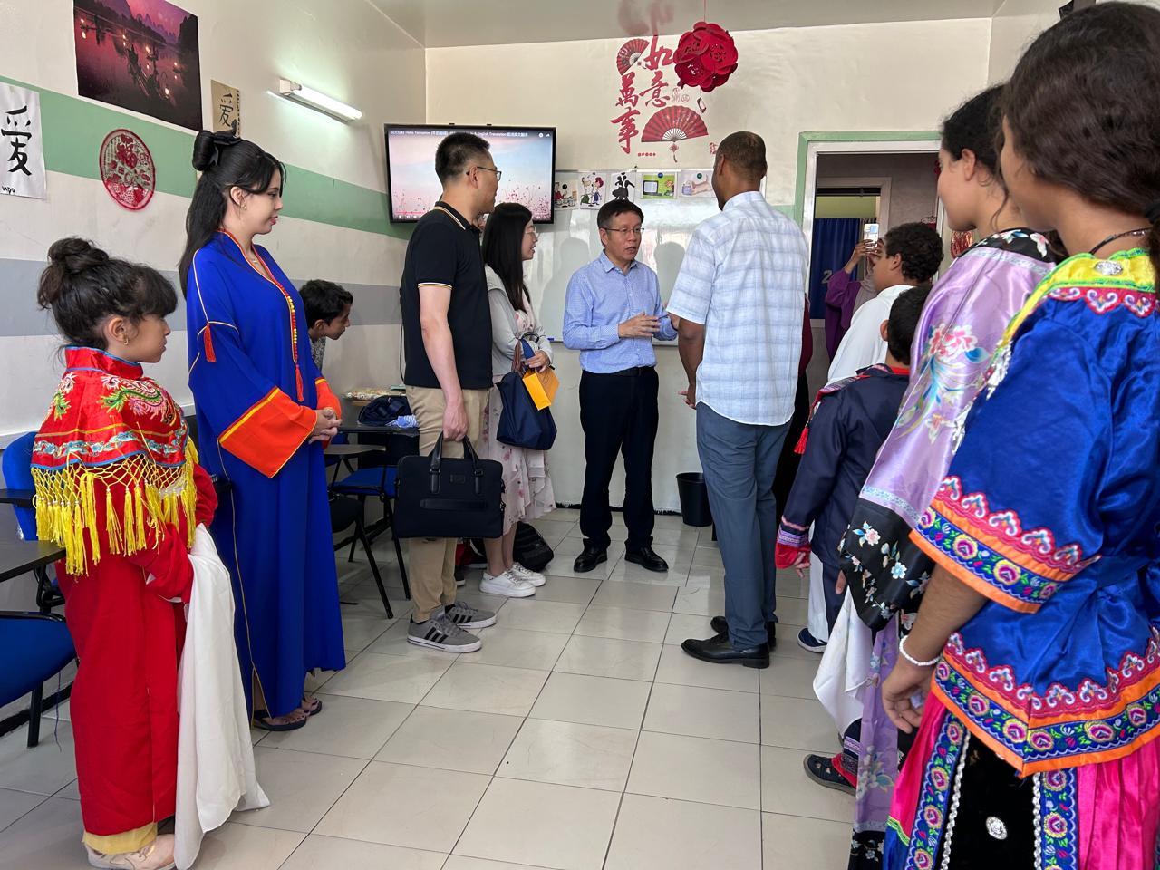 وتعريفا بمجهودات المركز وبرامجه وكفاءاته، استقبلت الإدارة التربوية والإدارية للمركز الصيني إياه، السيد السفير والوفد المرافق ، والذين قاموا بجولة في الفضاء الموثث للمركز ، حيث وقفوا جميعهم على مستوى التنظيم والمرافق المتكونة للمركز، من قاعات خاصة بتدريس اللغة الصينية والقاعات الخاصة باجتياز امتحان الكفاءة الصينية HSK ، ومن بينها قاعة مجهزة بالحواسب الخاصة لاجتياز الامتحان على الحاسوب وأخرى خاصة بالامتحان الكتابي الورقي.