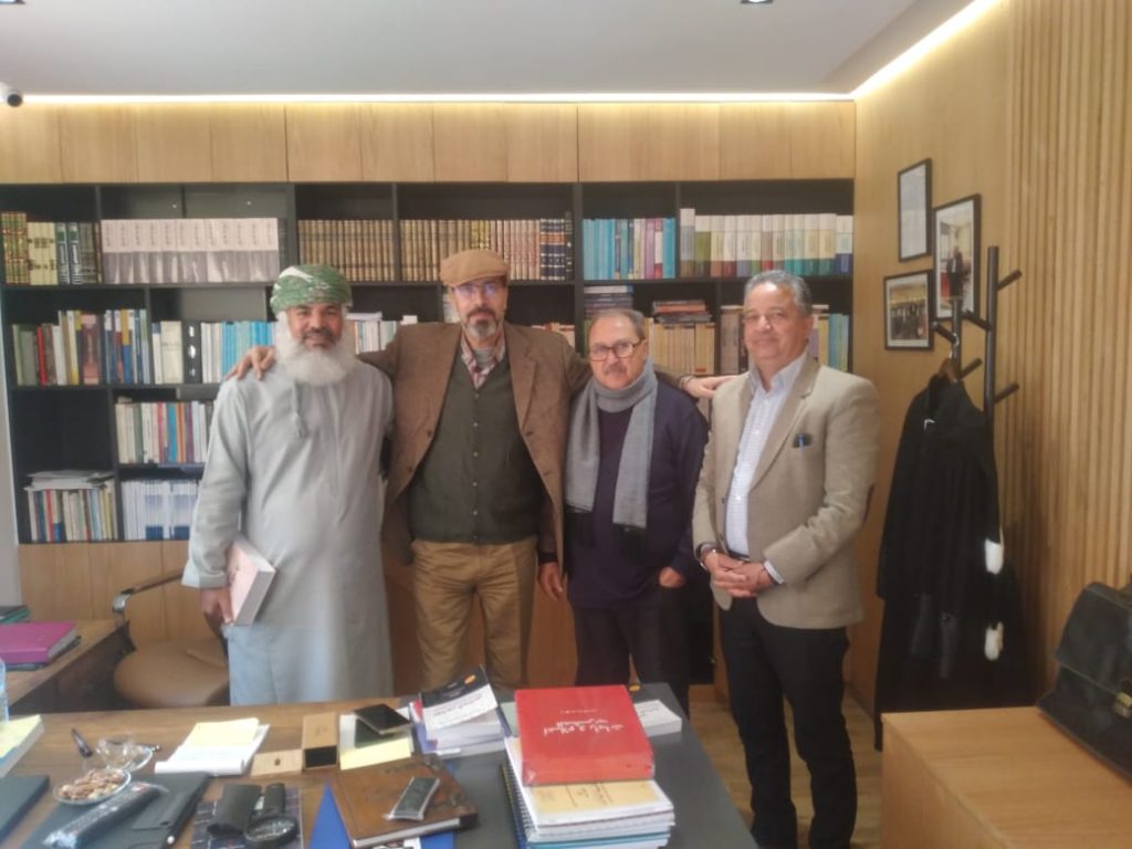 في هذه الزيارة قررت أن اقترب من الشاعر المغربي المراكشي فرفدتني إبنة (فاس) العريقة الشاعرة والباحثة الرصينة/ فاطمة بوهراكة بهاتف الشاعر الدكتور/ مصطفى غلمان ، وكنت وعدت الباحثة القديرة أن أعرج على فاس تلك الايقونة التي لم أقع في عشقها عيانا بعد حيث تقيم هي ، والشاعرة فاطمة قدمت للمكتبة العربية سفرا كبيرا من الشعر جزأت روافده باسماء الأوطان الكبيرة التي كتبت عن شعرائها ومن ضمنها شعراء المغرب في العهدين الآخيرين ، وعودة للرجل الضرب شاعرنا الدكتور مصطفى غلمان فهو رجل متعدد الحضور والمهارات والأثر ، والحديث عنه يضطرني لأكتب شهادة لا أرى أنها تجوز الآن لأن نصابها لم يحن بعد ، فهو علاوة على رحابة الصدر يتسم بتلك الروح التي تقتسم أيامها مع الآخرين لذلك لن تجده إلا مشغولا متواطئا ضد نفسه لصالح اصدقائه ، وقد أتم وأنعم برأي جميل حيث رأى أن يكون بداية التعارف هو بوجود قامة كبيرة من رجال القانون وهكذا كان ، حيث انتقلنا معا برفقة صديقين آخرين هما المهندس الاثري / ايت ابن عبدالله عبداللطيف والمهندس الزراعي / عبدالعزيز ايت فاسوخ ، والأول منهما يقوم مقاما لا يسده إلا النادر من الناس حيث يقوم بترميم البيوت القديمة ليعيد لها الحياة بنفخة في روحها فتغدو قصر إقامة وفندق جديد ، أما الثاني فهو يغرس في الأرض مهارته متتبعا الماء والشجر كي يخرجان للناس وهما في أبهى حلة وأكمل منظر ، وأخذتنا السيارة لمكتب البرفيسور القانوني / امحمد بن محمد مالكي الذي عاش في عمان عميدا لكلية الحقوق بجامعة السلطان قابوس والذي كان يتحدث بمعني الحب وسماء العشق المراكشي ، وكان اللقاء عظيما حيث لم يبق لي الرجل ما أقوله وهو يتعامل بتواضع المراكشي وعلو كعب الفقيه العالم بالقانون والسياسية والإدارة ، وقد ربطت هولاء الاربعة صداقة متينة وكانت مناسبة اللقاء هو تهنئة البروفيسور مالكي بإفتتاح مكتبه بمراكش مستقرا بعدما ألقى عصا الترحال، وكانت فرحتهم به التي أشركوني بحضورها فرحة لا توصف ، فلم يكن الود الظاهر في هذا اللقاء إلا رسالة عن عميق محبة المراكشي لابناء جلدته ووفائه لهم.