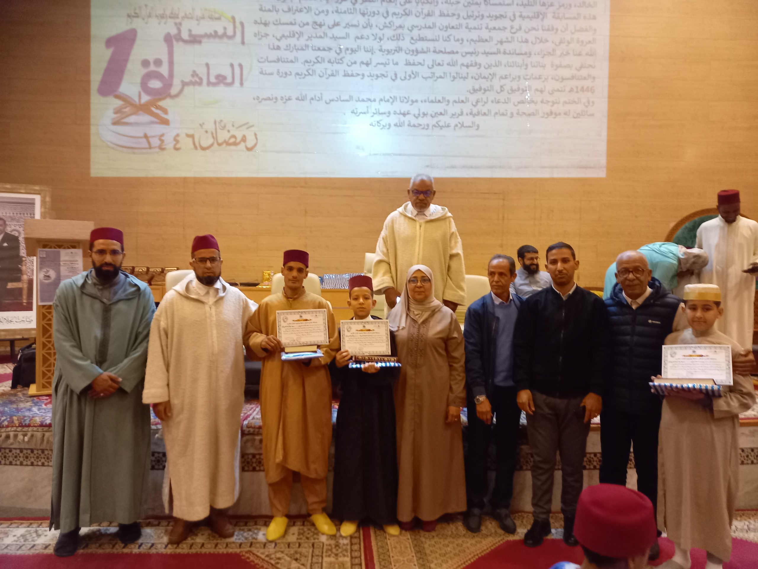 (كش بريس/مالكة العلوي) ـ في مشهد استثنائي يعكس جمال التحدي والإرادة، شهدت القاعة الكبرى للمركب الإداري والثقافي محمد السادس للأوقاف – باب إغلي مراكش- حضورًا مميزًا لأطفال جمعية الكتبية للصم: يوسف تملالين، إسماعيل العلوي شريف، عبد الإله المزوار، الذين شاركوا في النسخة العاشرة من مسابقة حفظ وترتيل وتجويد القرآن الكريم، المسابقة التي نظمتها جمعية تنمية التعاون المدرسي تحت إشراف المديرية الإقليمية لوزارة التربية الوطنية والتعليم الأولي والشباب والرياضة. يوم الأربعاء 26 مارس 2025، اللقاء الذي افتتح بآيات بينات من الذكر الحكيم، من قِبَلِ أستاذة عضو مكتب جمعية تنمية التعاون المدرسي، ليقف الجميع لترديد النشيد الوطني صوتيا وبلغة الإشارة.