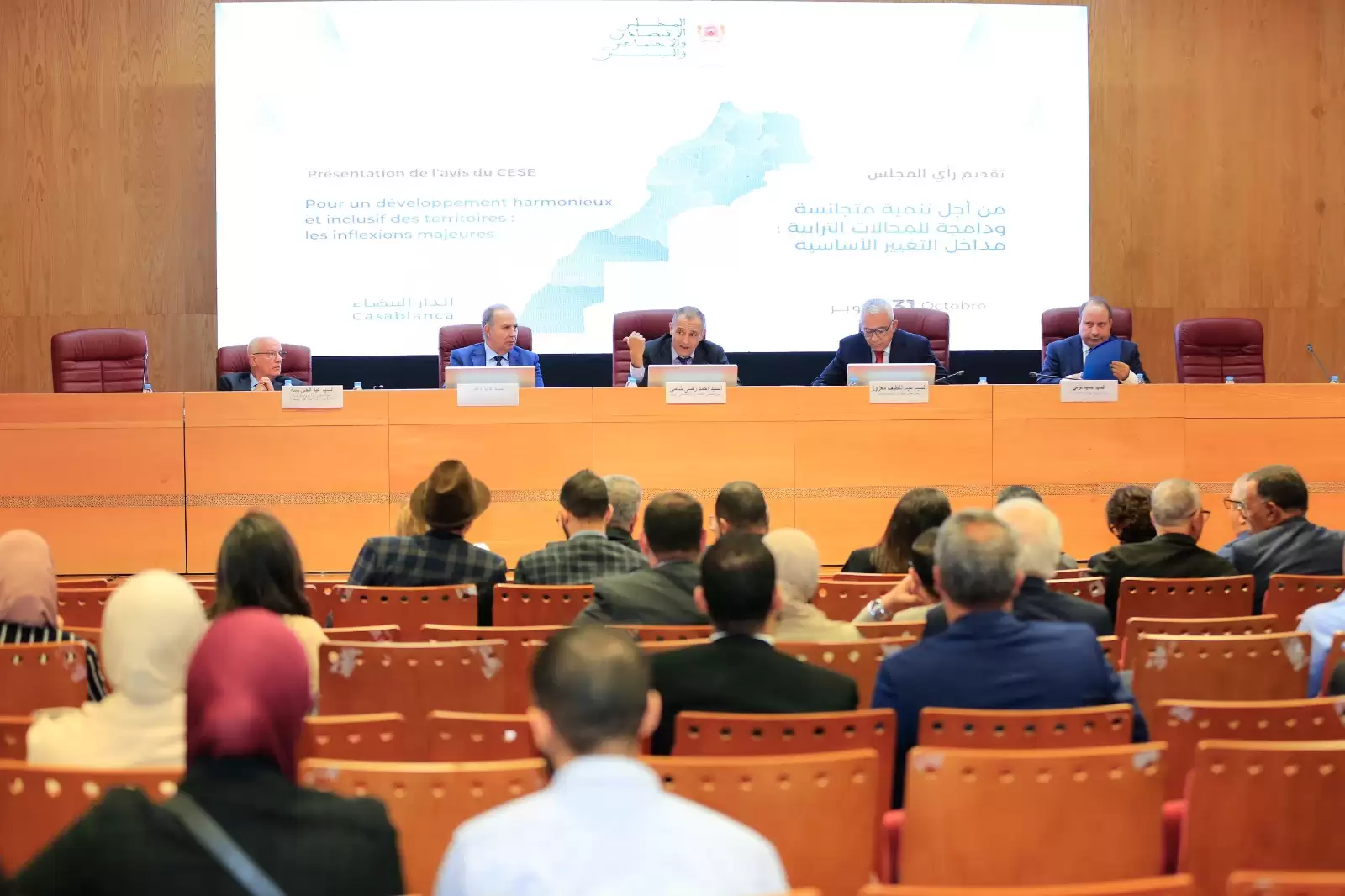 في ذات السياق، أكد المجلس على ضرورة النهوض بالتعاون بين الجماعات وبالتعاون العمودي بين مختلف المستويات الترابية (الجهة، العمالة/الإقليم، الجماعة) من أجل تعضيدٍ أفضل للوسائل والرفع من جودة الخدمات العمومية؛ مبرزا أوجه القصور والاختلالات التي لا تزال تعيق التنمية الترابية، ولا سيما منها التوطين الترابي غير المكتمل للفعل العمومي، وتعدد غير ناجع للمتدخلين في المنظومة الترابية وضعف الالتقائية بين أنشطتهم ومبادراتهم.