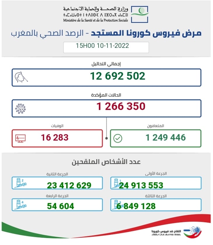 http://www.covidmaroc.ma/…/10.11.2022.COVID-19.Morocco.pdfوتتوزع حالات الإصابات المسجلة خلال الـ24 ساعة الأخيرة بين جهات: