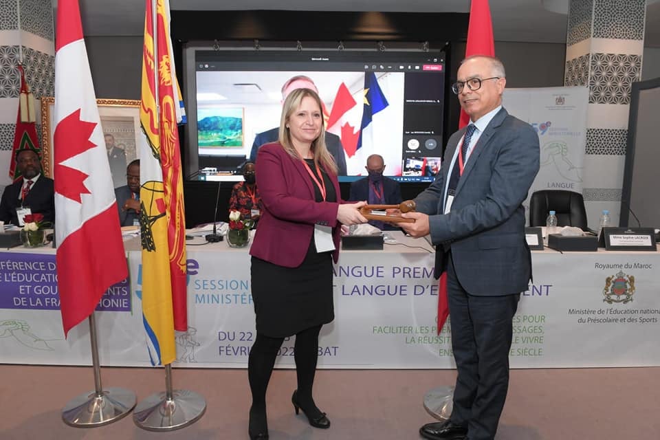 تسلم المغرب، في شخص وزير التربية الوطنية والتعليم الأولي والرياضة، خلال أشغال الدورة التاسعة والخمسين لمؤتمر وزراء التربية في الدول والحكومات الفرنكوفونية، رئاسة منظمة وزراء التربية في الدول والحكومات الفرنكوفونية، والتي نظمت تحت شعار “اللغة الأولى ولغة التعليم : ما هي استراتيجيات تيسير التعلم الأولي والنجاح المدرسي والعيش معا في القرن الحادي والعشرين ؟”.