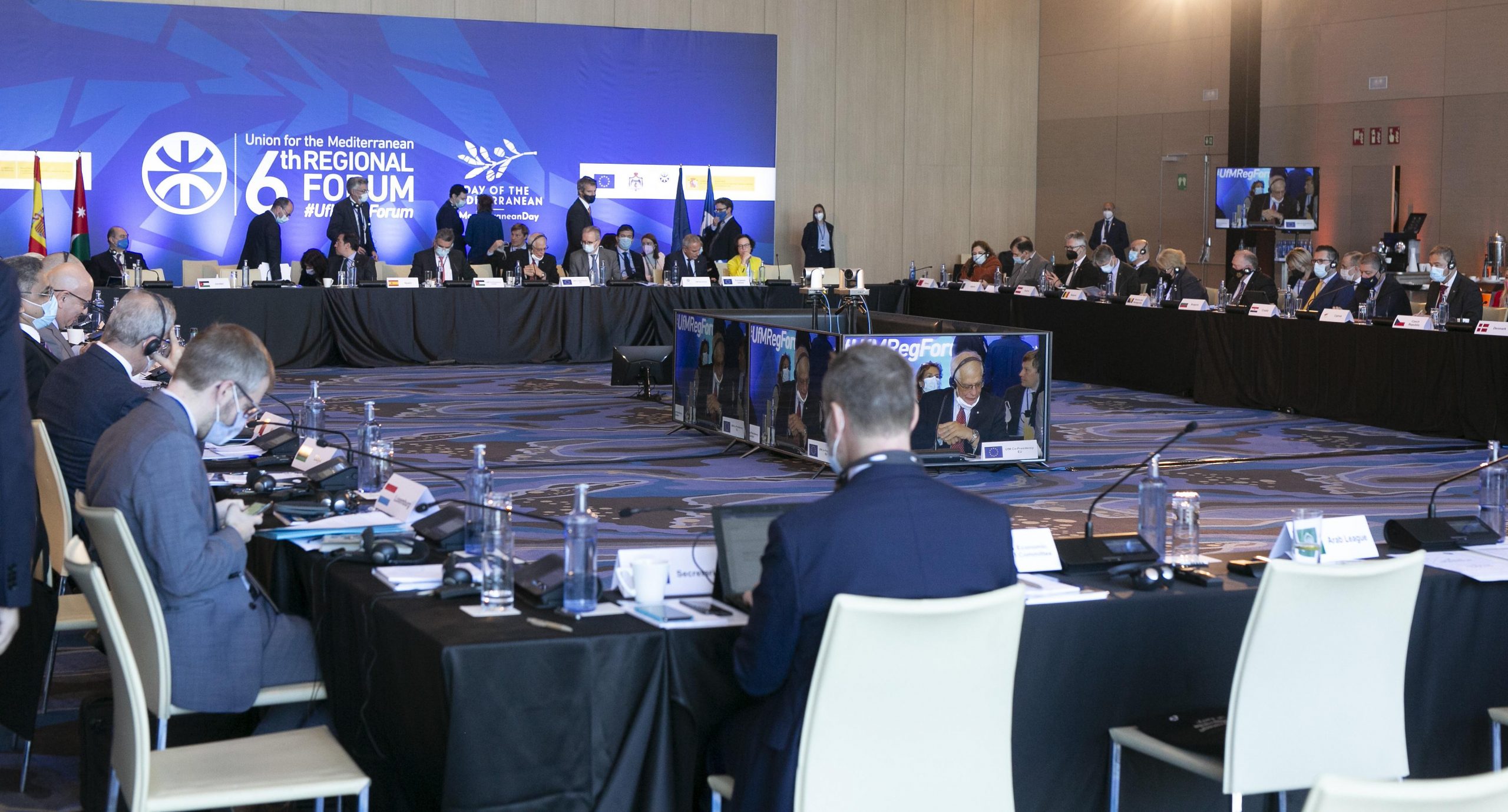 وفي هذا السياق، بحث المشاركون مدى تقدم المجالات الخمس ذات الأولوية للاتحاد من أجل المتوسط المنبثقة عن المنتدى الإقليمي الخامس (البيئة والعمل المناخي، التنمية البشرية والاقتصادية المستدامة والشاملة، الإدماج الاجتماعي والمساواة، التحول الرقمي والحماية المدنية) والوسائل الكفيلة بتسريع تجسيدها.