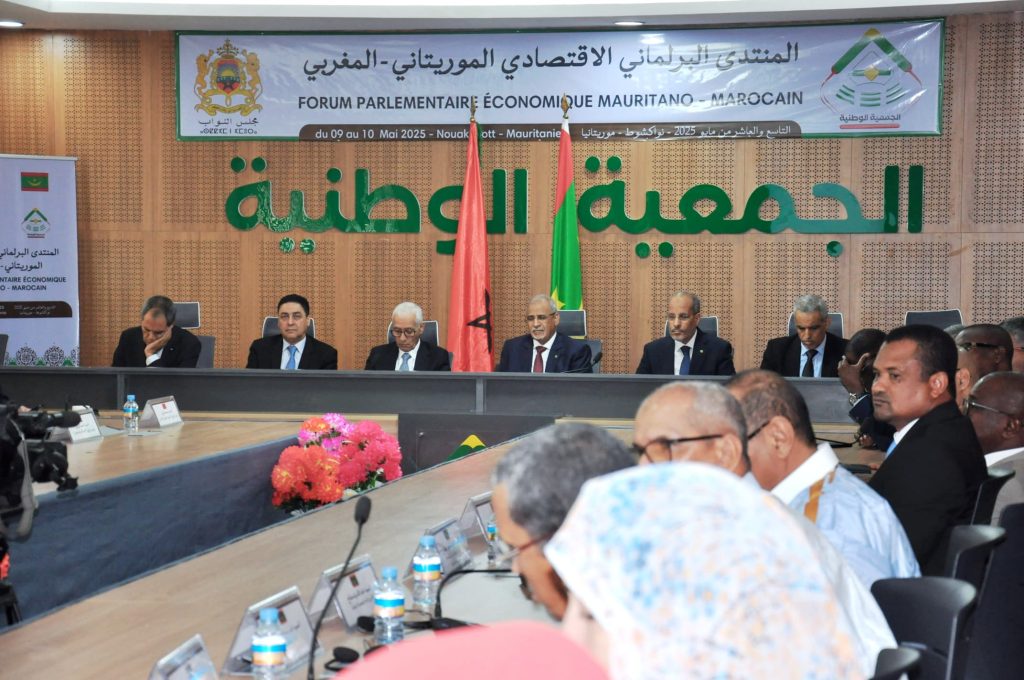 ووفق إعلان نواكشوط الختامي، الذي توصلت (كش بريس) بنسخةمنه، فإنه “في إطار روابط الأخوة والعلاقات التاريخية والاستراتيجية متعددة الأبعاد التي تجمع الجمهورية الإسلامية الموريتانية والمملكة المغربية”، و”تفعيلا لمضامين مذكرة التفاهم الموقعة في نواكشوط بتاريخ 18 يوليو 2022 بين الجمعية الوطنية بالجمهورية الإسلامية الموريتانية ومجلس النواب بالمملكة المغربية”، و”بدعوة كريمة من السيد محمد بمب مكت رئيس الجمعية الوطنية بالجمهورية الإسلامية الموريتانية، انعقدت يومي 9 و10 مايو 2025 بالعاصمة الموريتانية انواكشوط، الدورة الأولى للمنتدى البرلماني الاقتصادي الموريتاني المغربي، تحت رئاسة رئيسي المؤسستين التشريعيتين، السيدين محمد بمب مكت وراشيد الطالبي العلمي، ومشاركة وزراء من حكومتي البلدين ورؤساء وممثلين لمختلف مكونات الجمعية الوطنية الموريتانية ومجلس النواب المغربي، وممثلين للقطاع الخاص وخبراء من البلدين”.