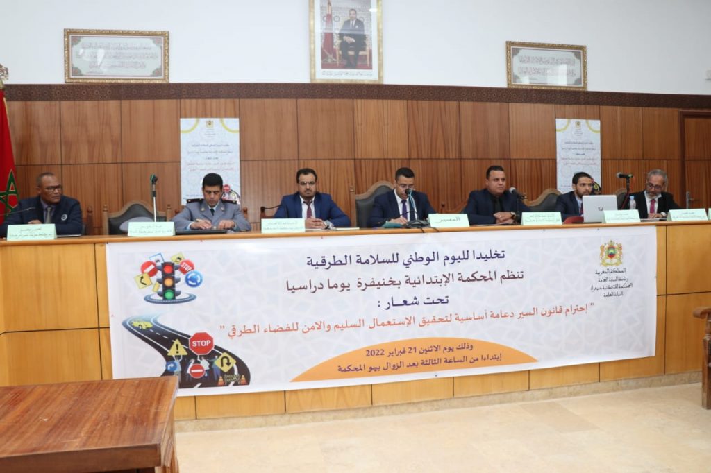 نظمت النيابة العامة بالمحكمة الابتدائية بخنيفرة، اليوم الاثنين، يوما دراسيا بالتزامن مع تخليد اليوم الوطني للسلامة الطرقية ، تحت شعار ” احترام قانون السير دعامة أساسية لتحقيق الاستعمال السليم والآمن للفضاء الطرقي