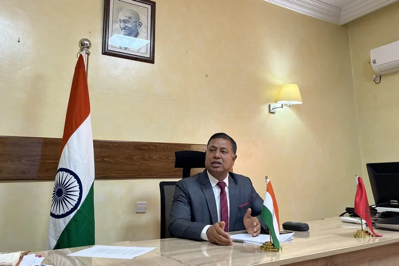 وفي توصيفه لمسار العلاقات الثنائية، تحدث السفير عن “مرحلة ذهبية”، تجسدت في تبني المغرب الإعلان الصادر عن القمة، الذي يركز على الشفافية والشمولية وتعزيز التعاون جنوب–جنوب. هذا البعد الأخير لم يُطرح كشعار سياسي فقط، بل كآلية عملية لبناء شراكات أكاديمية وبحثية؛ إذ أشار إلى روابط متينة مع مؤسسات مغربية رائدة مثل جامعة محمد السادس متعددة التخصصات التقنية، والجامعة الأورومتوسطية بفاس، وجامعة الأخوين، مستحضرا مؤتمرا احتضنته الجامعة الأورومتوسطية بشراكة مع مؤسسة “Omprakash” وضم خبراء مغاربة في الذكاء الاصطناعي في سياق التحضير للقمة.