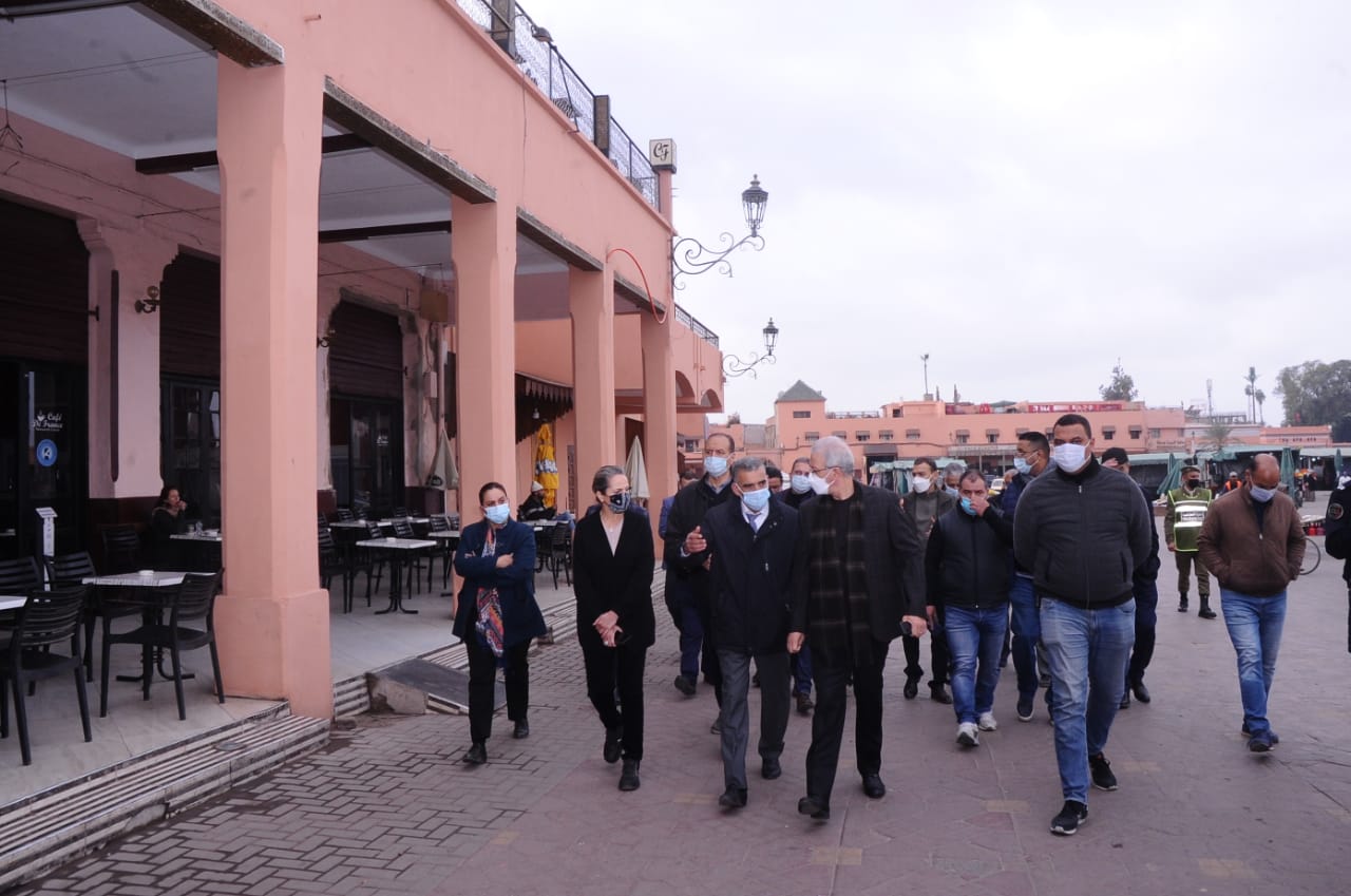 قام والي جهة مراكش أسفي ووفد مرافق له، صبيحة يومه السبت 19 فبراير 2022 بزيارة تفقدية لسير أشغال مشروع تهيئة الشطر الأول من ساحة جامع الفنا والمسارات المحاذية لها، والمندرجة ضمن الأوراش المفتوحة بالبرامج التنموية بالمدينة العتيقة بمراكش والتي أعطى انطلاقتها صاحب الجلالة الملك محمد السادس حفظه الله.