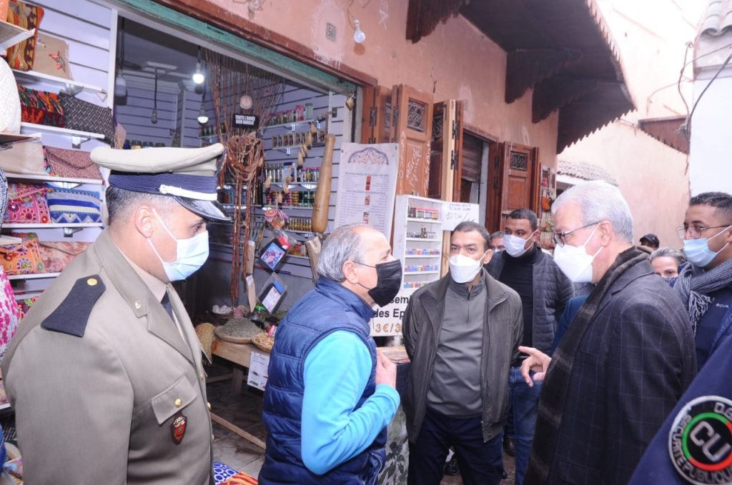 و عاين السيد الوالي مدى تقدم الاشغال بجامع الفنا، زنقة الأبناك، مسار دار سي سعيد بن يوسف الشطر الأول، القنارية، البياضين، فندق الغرابلية، المركز الصحي مارستان، المسار بن يوسف جامع الفنا مرورا بسيدي اسحاق،السمارين، فندق بنشبابة وسوق الجديد. وقد شكلت كذاك هذه الجولة فرصة أخرى للتواصل خاصة مع التجار والحرفيين المعنيين بهذه المشاريع والانصات لاقتراحاتهم .