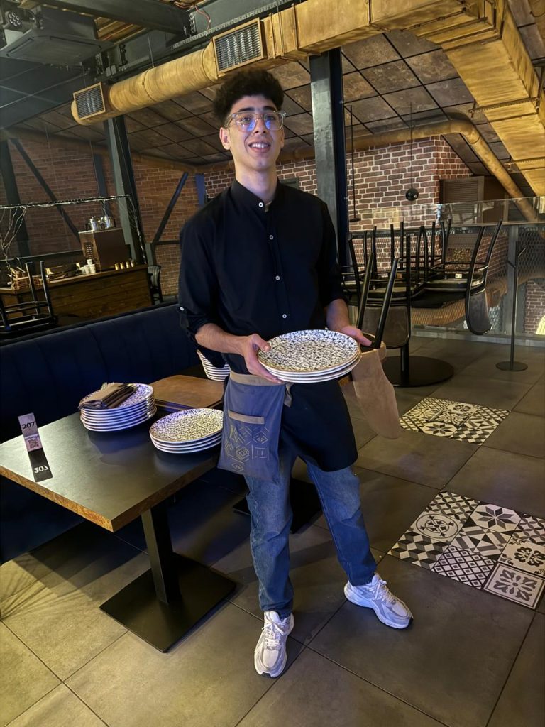 في مطعم شهير كان الشاب المغربي (فؤاد) من فاس ومعه آخرون بينهم فتيات من مدن مغربية مختلفة، في الاستقبال وفي خدمة الزبناء الى جانب زملاء لهم من الجزائر ومصر ولبنان وأوكرانيا وبلدان أخرى. منهمكين في المهام المسندة اليهم بتفان حتى لا تضيع عليهم فرصة العمل الذي تساعدهم أجرته على تغطية بعض مصاريف الدراسة والعيش والإقامة لاسيما الإيجار الذي تتجاوز قيمته الشهرية للغرفة الواحدة في السكن المشترك 5000 درهم.