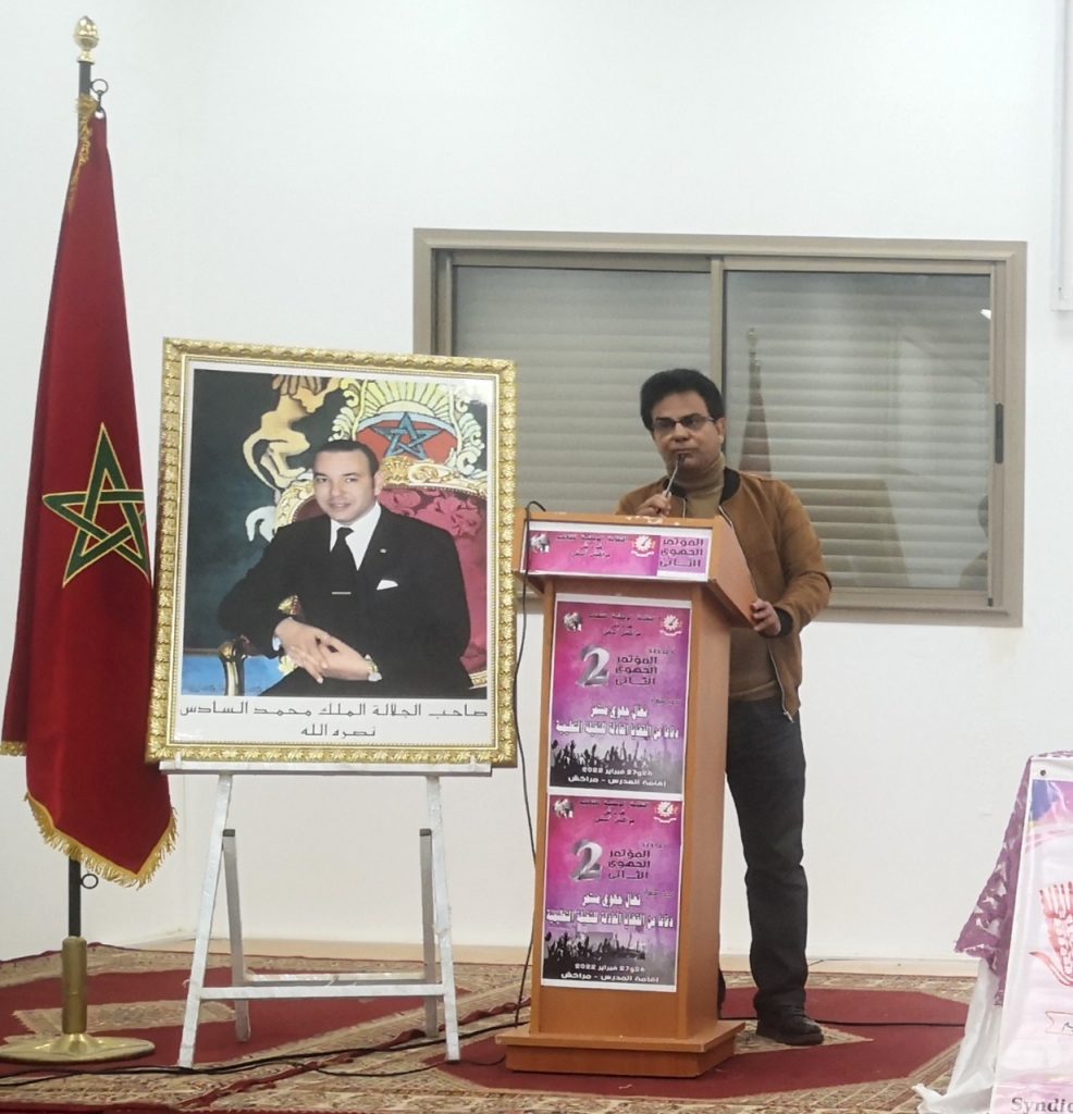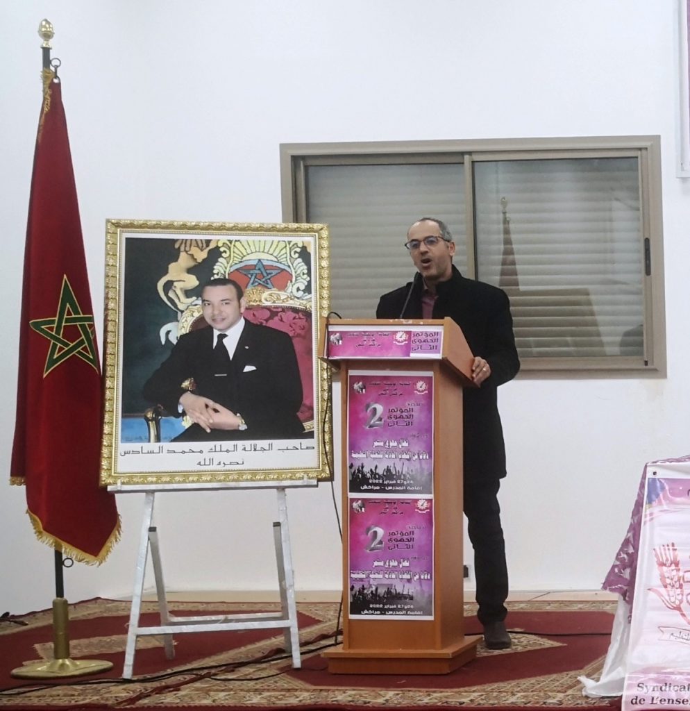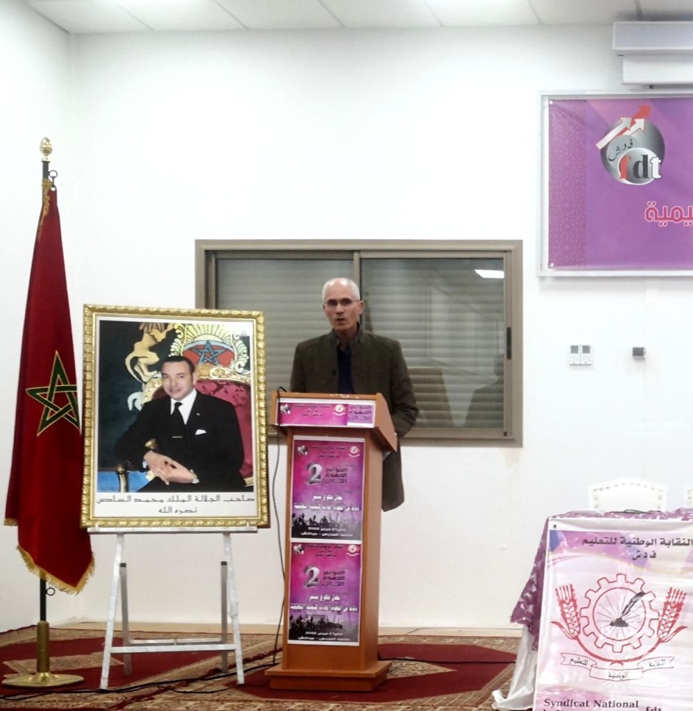للنقابة الوطنية للتعليم ” فدش ” في مؤتمرها الجهوي الثاني بجهة مراكش أسفي، مؤكدا على غرار ما جاء في كلمة الأستاذ سعيد العطشان، أن العمل النقابي ما يزال يواجه تحديات أكبر وأعظم كل الشريحة التعليمية تعرفها، لذلك لابد للفرقاء النقابيين من التنسيق، كما ذكر بأن هناك تنسيق مشرق بين هؤلاء الفرقاء، الشيء الذي يشهد به للتاريخ أرشيف هذا التنسيق إقليميا وجهويا ووطنيا، الذيي شارك فيه مناضلاته ومناضلوه من نساء ورجال التعليم في خوض محطات مظلمة بكفاح وبنضال مستميت، حيث تجمع بين إطاراتها نفس المرجعية الفلسفية والإيديولوجية والتاريخية، وتزخر مقراتها بأيقونات ضحت بدمائها من أجل الديمقراطية والحرية والعدالة الاجتماعية وحقوق الإنسان والطبقة العاملة وجميع شرائح وفئات الشعب المغربي.