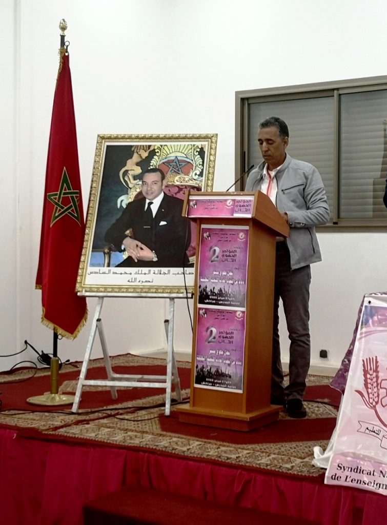 بالنيابة عن القيادة الوطنية لمنظمتهم النقابية إلى كل النقابات الصديقة والأحزاب السياسية وكل الجمعيات الداعمة وجميع الفعاليات الحاضرة في هذه الجلسة الافتتاحية لهذا المؤتمر الجهوي، وأردف قائلا مما لاشك فيه أن اختيار شعاره سيجسد استمرارية النضال، حيث أن النقابة الوطنية للتعليم ظلت تجسد هذا الشعار منذ تأسيسها إلى الآن طيلة مدة ستة وخمسين سنة، وتنظيم هذا المؤتمر الإقليم في هذا الوقت بالذات، هو تتويج لمجهود تنظيمي كبير جدا، ولعل تجسيد هذا الشعار هو دليل سيغني النقاش الذي سيكون خلال جلسات وورشات المؤتمر، مما سيجعله يتوج بنجاح جميع أشغاله، ولعل في تجديد وضخ دماء جديدة في هذا الجهاز الجهوي سيضمن الاستمرارية التي رفعها هذا الشعار. وفي كلمة مقتضبة ألقاها الأستاذ كمال منصف، ممثل الأكاديمية الجهوية للتربية والتكوين بجهة