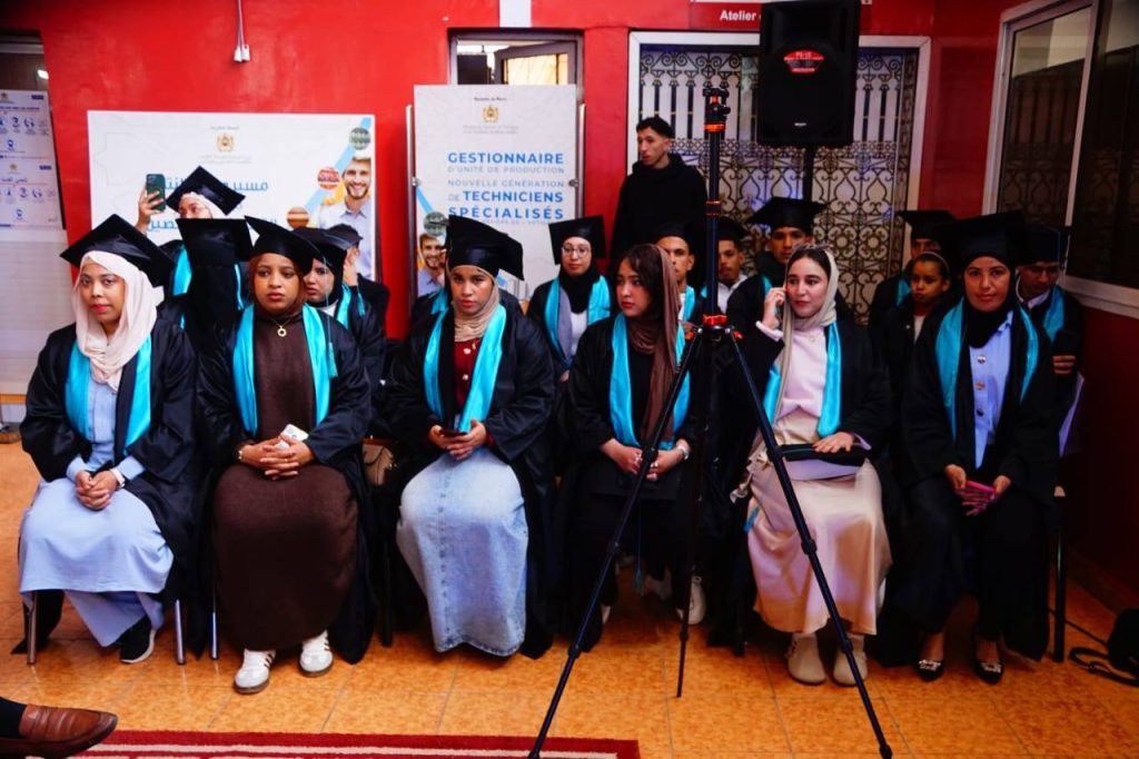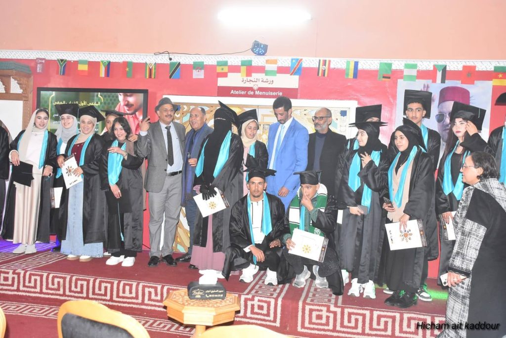 وشهد اليوم الأول من الملتقى تنظيم حفل لتوزيع الشهادات على خريجي المعهد برسم السنة التكوينية 2024–2025، إلى جانب تقديم عرض أزياء من إنجاز خريجات شعبة الخياطة الراقية، عكس مستوى التكوين وجودته. كما تم افتتاح معرض للمنتوجات الحرفية التي أنجزها شباب حرفيون وتعاونيات نسائية، أتاح للزوار فرصة الاطلاع على إبداعات محلية متنوعة.