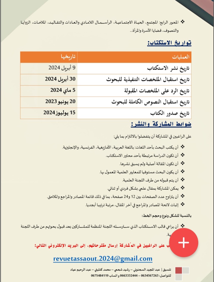 ونعرض هنا تواريخ الاستكتاب، وضوابض المشاركة والنشر كما توصلنا بها :