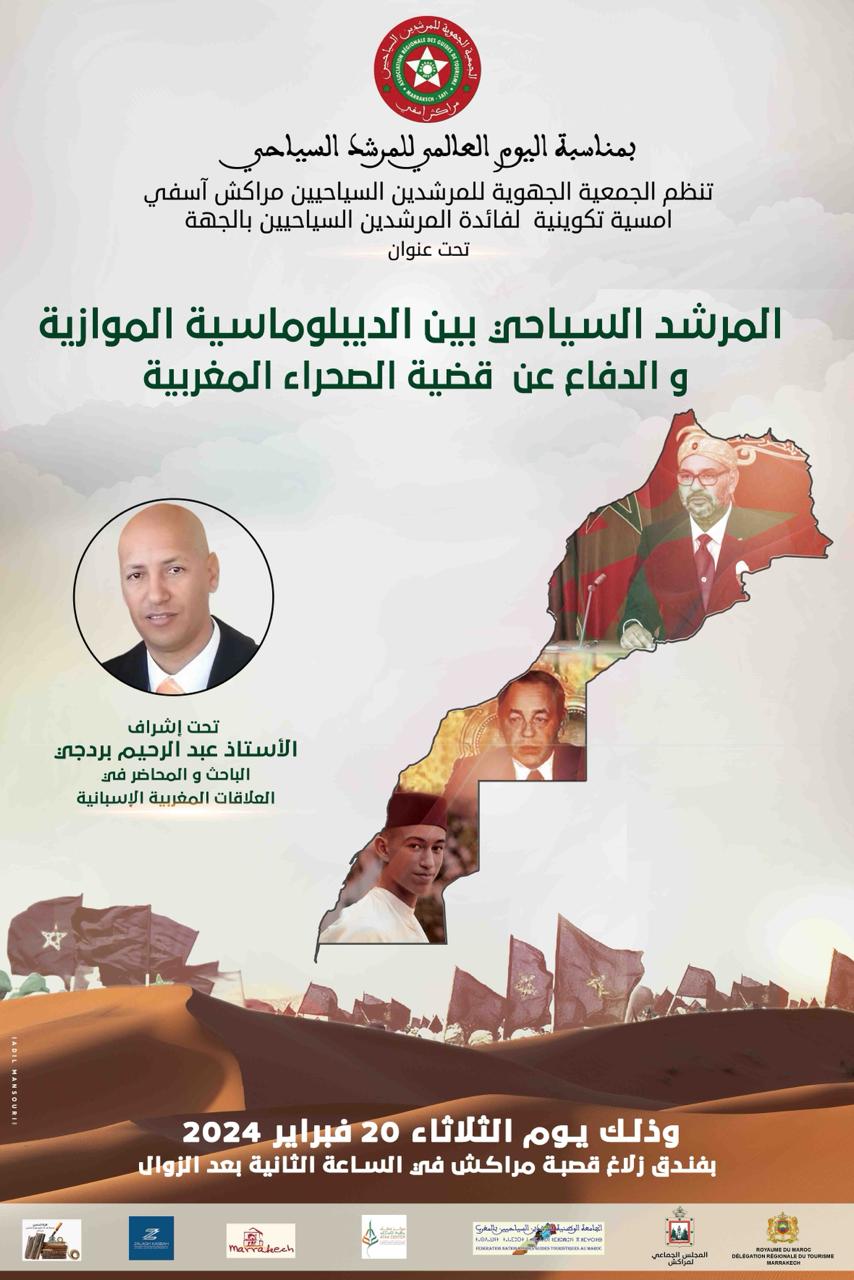 (كش بريس/خاص) ـ أعلنت الجمعية الجهوية للمرشدين السياحيين بجهة مراكش آسفي، عن اعتزامها تنظيم دورة تدريبية يؤطّرها الأستاذ عبد آلرحيم برديني ، اختصاصي في العلاقات المغربية الإسبانية وخبير في الشؤون الصحراوية ومن أشرس المدافعين عن القضية الوطنية.