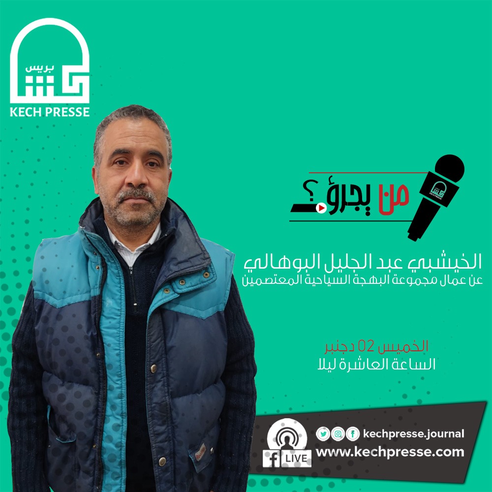 يستضيف برنامج “من يجرؤ؟” على KECHPRESSE في حلقة يومه الخميس 2 دجنبر 2021 تمام الساعة التاسعة والنصف 21.30 مساء، السيد عبد الجليل الخيشبي، ممثلا عن المكتب النقابي المحلي لمجموعة البهجة النخيل السياحية بحي النخيل مراكش، التابع لنقابة الاتحاد العام الديمقراطي للشغالين بالمغرب.