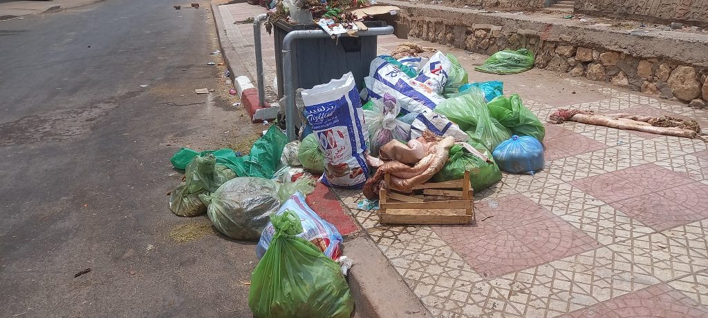هذا ورصدت “كشبريس” خلال جولتها بالعديد من أحياء المدينة، الانتشار الفظيع لمخلفات الذبائح وفوضى غير مسبوقة في ضبط وفرز النفايات، التي ساهم في تحللها موجة ارتفاع الحرارة والتي شهدتها المدينة خلال هذه الفترة، بالإضافة إلى تأخر عمال النظافة (الذين بدلوا جهدا كبيرا رغم انعدام الآليات وضعف أدائها)، خلال يوم العيد .