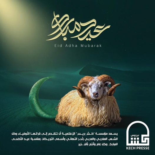 أهل الله هذا الشهر المبارك وعيد الأضحى السعيد على مولانا أميـر المؤمنين وحامي حمـى الوطن والديـن صاحب الجلالة الملـك محمـد السـادس نصره الله باليمـن والخيـر والبشر والبركـات، وعلى ولي عهده صاحب السمو الملكي الأميـر الجليل مولاي الحسن، وصنوه السعيد صاحب السمو الملكي الأميـر المجيد مولاي رشيد، وسائـر أفراد الأسرة الملكية الشريفة بالسعادة والهناء، وعلى الشعب المغربي والأمة الإسلامية قاطبة بالرقي والازدهار، إنـه سميـع مجيـب.