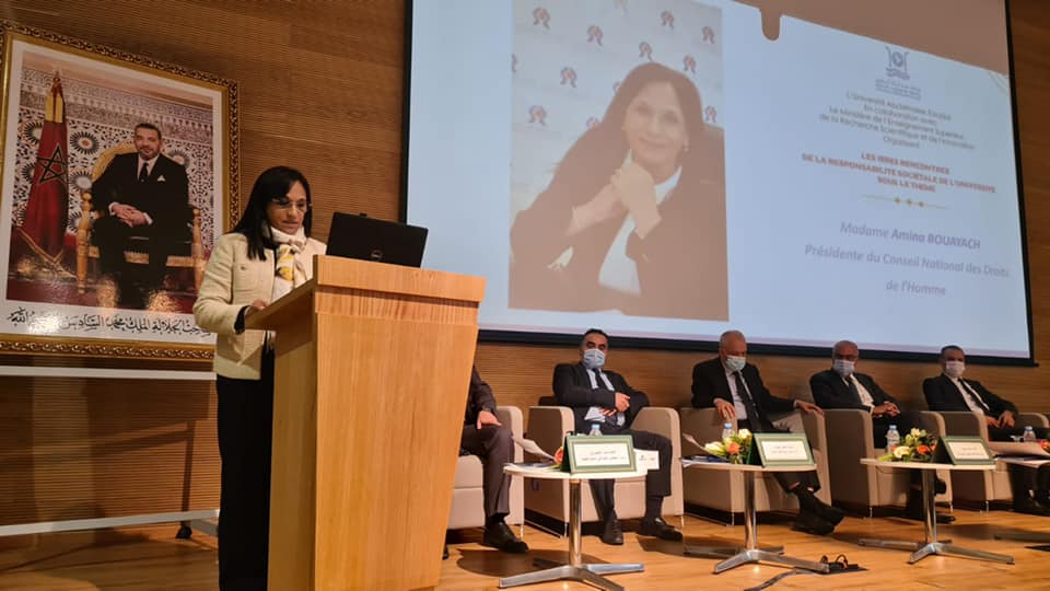 وأضافت بوعياش، في كلمة لها خلال افتتاح المناظرة الموسومة ب” المسؤولية المجتمعية للجامعة : من أجل حياة جامعية دامجة ومندمجة”، أنه إلى جانب وظيفتي التعليم والبحث العلمي، وهما وظيفتان أساسيتان، تتحدد المسؤولية المجتمعية للجامعات، من منظور المجلس الوطني لحقوق الإنسان، أيضا بخدمة المجتمع، باعتبارها وظيفة ثالثة، تتجسد في بناء مجتمع المعرفة بناء ثقافة المواطنة وتكوين الكفاءات ومواكبة التحولات على مستوى القيم.