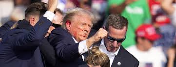 (كش بريس/وكالات) ـ نقلت وسائل إعلام أمربكية، أن الرئيس الأمريكي السابق دونالد ترامب، تعرض لإطلاق نار في تجمع إنتخابي بنسلفانيا اليوم السبت. وأظهرت لقطات مصورة أفرادا من جهاز الخدمة السرية والشرطة يرافقون ترامب إلى سيارة بينما كان يرفع قبضته في الهواء. كما ظهرت في اللقطات المصورة دماء على أذنه وقناصة على سطح قريب من المنصة التي كان يقف عليها ترامب.