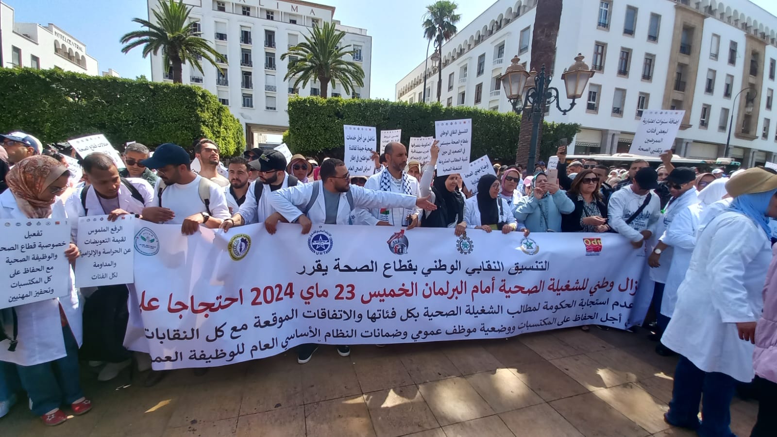 (كش بريس/ التحرير) ـ توعد التنسيق النقابي الصحي، بتصعيد برنامجه الاحتجاجي، ضد ما وصفه بتلكؤ الوزارة الوصية على القطاع وتجاهل الحكومة، معلنا عن “تنويهه وإشادته بنجاح محطات الإضراب” في شهر ماي الماضي والأسبوعين الأولين من شهر يونيو الجاري، ومؤكدا على أنه “مضطر، أمام تعنت الحكومة وترويجها لخطابات تغليطية والتهرب من تنفيذ ما تم الاتفاق بشأنه في محضر اتفاق 29 دجنبر 2023، إلى تقرير المزيد من التصعيد والاحتجاج بـإضراب 3 أيام كل أسبوع (25-26-27 يونيو 2024 ) ما عدا أقسام المستعجلات والإنعاش، مع “وقفات احتجاجية”.