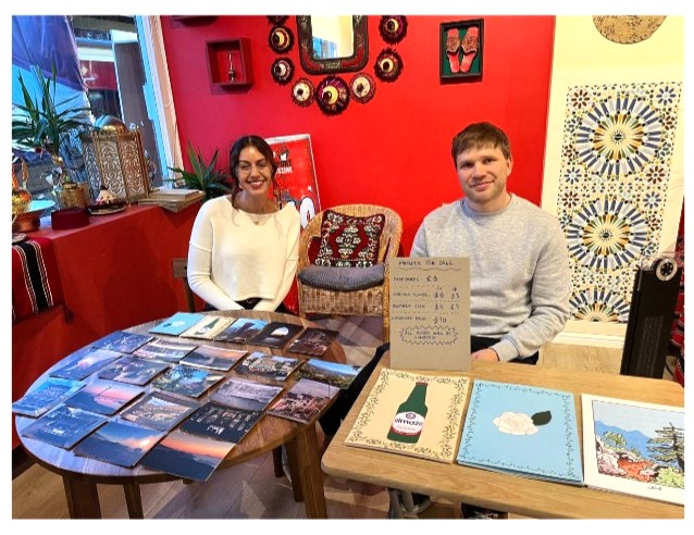 وأقيمت الأمسية التضامنية في المطعم الليبي في منطقة إيلينك Ealing، وأعدّ رسومات خاصة بالأرز الفنان البريطاني من أصل ألماني كارل ميليت بمساعدة السيدة تشارو أرغوان الهندية الأصل والبريطانية الجنسية.