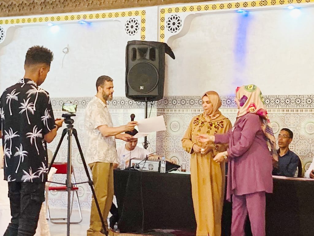 وقد قدّٓم مباهج الحفل السيد الحارس العام المقتدر الأستاذ عبد الرحمن خلوق، الذي أشاد بجهود الأطر التربوية على مستوى التأطير والمتابعة الصفية والدعم وكذا الأطر الإدارية لما لها من دور في مصاحبة المتعلمين والمدرسين على السواء، وتهييئ أجواء العمل، وتيسير العمليات التأطيرية وتسطير برامج المتابعة وأنشطة الدعم والتقوية وتوفير الوسائط التعليمية، كما ثمن جهود الأمهات والآباء في شخص جمعية الآباء على مستوى تجسير التواصل ومتابعة الأبناء وتتبع العمليات التربوية والتكوينية.. مما عزز تفوق المتعلمين وتميز نتائجهم المحصلة وارتقائهم درجات الحظوة والسموق في كل المستويات التعليمية وخصوصا في الاختبارات الإشهادية الجهوية.