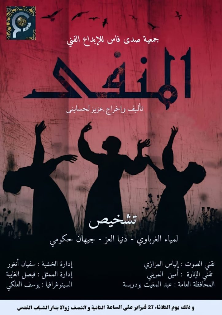 وعلى صعيد جهة مكناس فاس، تنافست خمس فرق مسرحية، حيث حازت مسرحية “المنفى” لفرقة جمعية صدى فاس للإبداع الفني (دار الشباب القدس) على المرتبة الأولى وثلاث جوائز في الإقصائيات الجهوية، إذ كانت جائزتا التأليف والإخراج من نصيب عزيز لحسايني، بينما نال يوسف علكي جائزة السينوغرافيا.