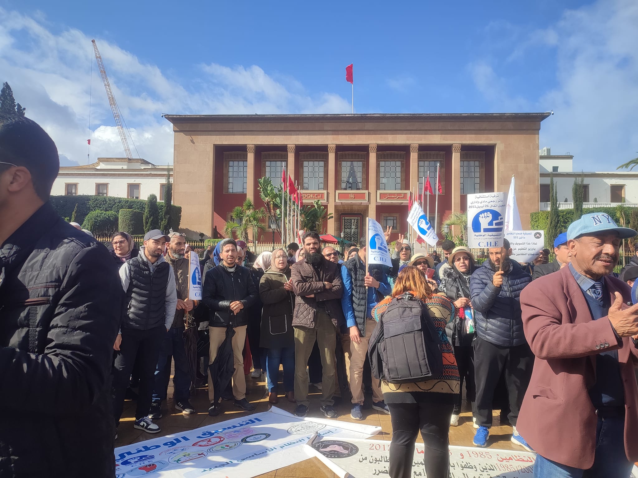 (كش بريس/ خاص) ـ نفذ التنسيق الوطني لقطاع التعليم، صباح يومه الأحد أمام مقر البرلمان المغربي، وقفة احتجاجية ضد تلكؤ وزارة التربية الوطنية في إعادة تصحيح قرار توقيف الأساتذة والأستاذات وأطر الدعم وقطع مصدر عيشهم الوحيد.