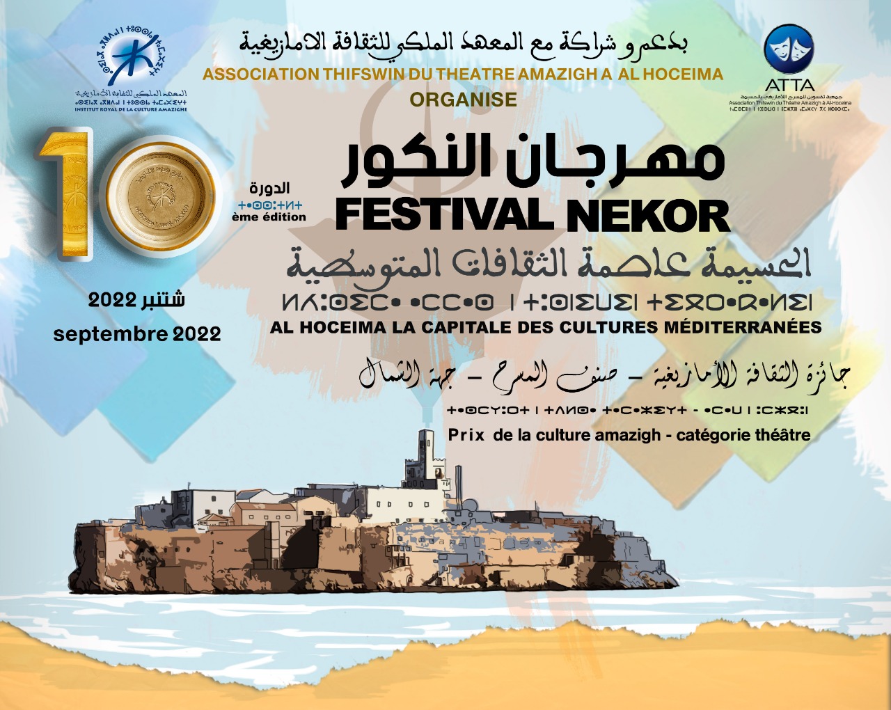 ووفقا لإعلان توصلت “كش بريس” بنظير منه، فإن الجمعية تعلن إلى علم العموم أنه في إطار شراكتها مع المعهد الملكي للثقافة الأمازيغية، وطبقا لمقتضيات الإطار المرجعي للشراكة بين المعهد والجمعيات الوطنية العاملة في مجال النهوض بالأمازيغية، ووفقا لمقتضيات نظام جائزة الثقافة الأمازيغية المعتمد من لدن المعهد الملكي للثقافة الأمازيغية، تتولى جمعية ثفسوين للمسرح بالحسيمة تنظيم الجائزة الوطنية للثقافة الأمازيغية برسم سنة 2021، صنف المسرح – جهة الشمال، في إطار فعاليات مهرجان النكور للمسرح في دورته العاشرة. والذي تنظمه الجمعية في الفترة الممتدة من 27 شتنبر الى 2 اكتوبر 2022 بالحسيمة.