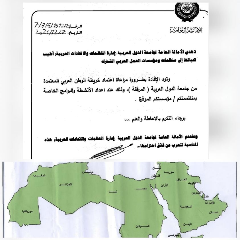 أقدمت جامعة الدول العربية مؤخرا على توجيه مذكرة إلى جميع المنظمات والهيئات المنضوية تحت لوائها، توصيها باعتماد خريطة موحدة في جميع التظاهرات التي تنظمها، مرفقة بصورة لخريطة الدول العربية، ضمت خريطة المغرب كاملة. ووفق ذلك عممت الجامعة المذكرة على الهيئات والمنظمات التابعة لها وطالبت بالالتزام بفحواها.