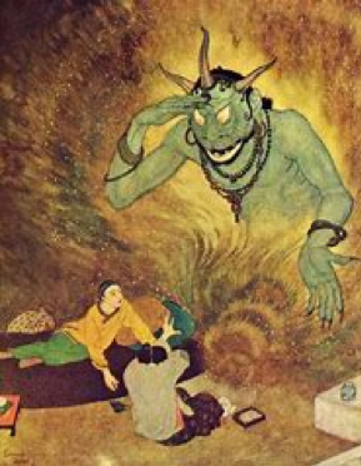 فلما نظر خراق الشجر تلك الفعال أخذته الحيرة والانذهال .. وبلغ منه الغضب مبلغا شديدا ما عليه من مزيد، لأن وحش الفلا تفوق عليه في هذا المجال وكان يظنه منفردا به ولا يجيده غيره، فطرده في الحال ولم يجبه على سؤال وشرده في البراري والقفار ..