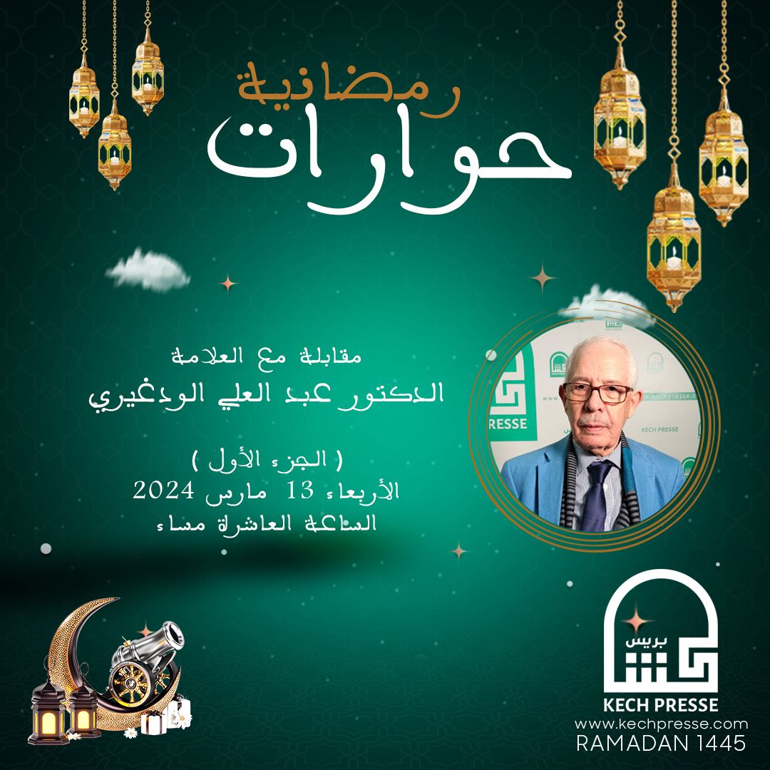 (كش بريس/ خاص) ـ تبث قناة KECHPRESSE.COM في إطار برامجها الرمضانية، في حلقتين متتاليتين، لقاء مع العلامة اللغوي والمعجمي الدكتور عبد العلي الودغيري.