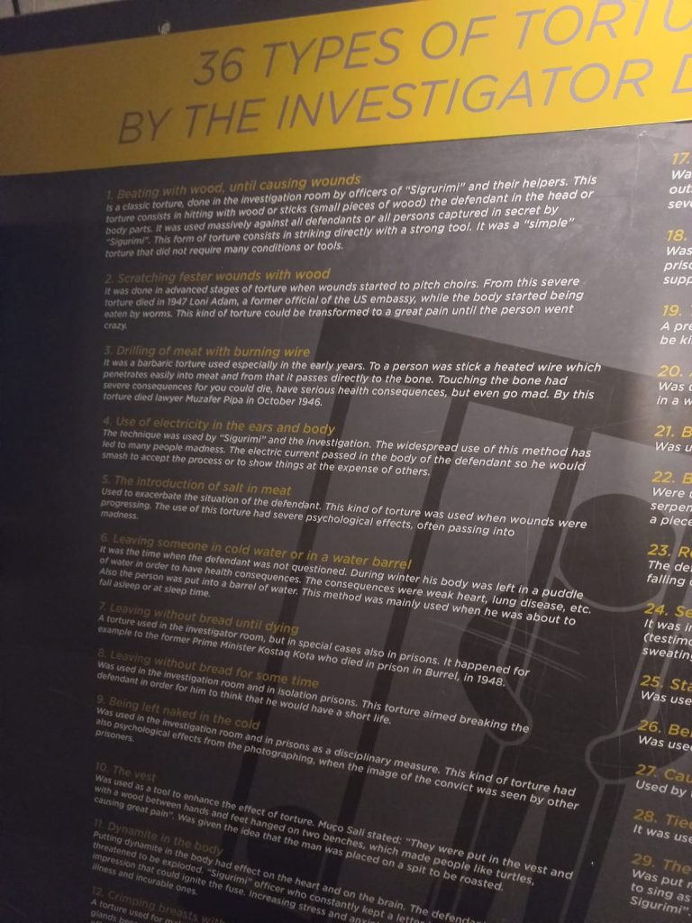 في هذا المتحف نجد توثيقا متكاملا لجميع جرائم النظام الشيوعي. حيث أن صور جميع ضحايا النظام معروضة من مختطفين ومعتقلين. والذين تم اغتيالهم مع عرض أفلام للضحايا، يتحدثون فيها عما تعرضوا له من تعذيب. ونجد كذلك أدوات التعذيب معروضة ووثائق عن الأساليب المستعملة من حرمان من النوم وأضواء قوية وميكروفونات للتصنت موضوعة خلسة في المكنسة وفي جهاز الهاتف الخ…