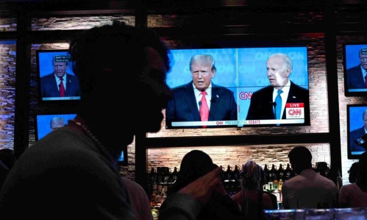 وخلال نصف الساعة الأولى من المناظرة بدا بايدن أجشأ ومترددا في بعض الأحيان وتعثر في الحديث أكثر من مرة، في حين كان ترامب يشن هجوما تلو الآخر يتضمن العديد من المعلومات المغلوطة المتكررة على غرار الادعاء بأن المهاجرين ينفذون موجة جرائم وأن الديمقراطيين يدعمون قتل الأطفال.