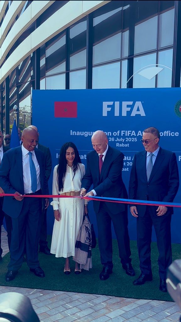 (كش بريس/التحرير)ـ في إطار توسيع حضور الجهاز الكروي العالمي بالقارة الإفريقية، جرى صباح اليوم السبت، تدشين المكتب الاقليمي للاتحاد الدولي لكرة القدم FIFA بالعاصمة المغربية الرباط، بحضور رئيس الفيفا جاني إنفانتينو إلى جانب كل من باتريس موتسيبي رئيس الاتحاد الإفريقي لكرة القدم وفوزي لقجع رئيس الجامعة الملكية المغربية لكرة القدم.