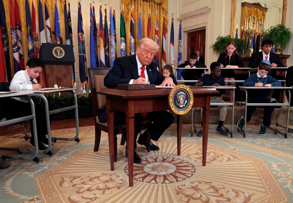 وقال ترامب في مراسم التوقيع التي جرت بالبيت الأبيض “سنُعيد التعليم، ببساطة، إلى الولايات حيث ينتمي”.