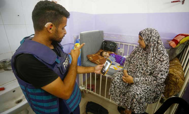 أبو عمرة يحوّل أنقاض الحرب إلى مشاهد مفهومة بلغة الإشارة، وينقل من داخل المستشفيات ومراكز الإيواء تفاصيل الإصابات والتجويع ونداءات الاستغاثة.