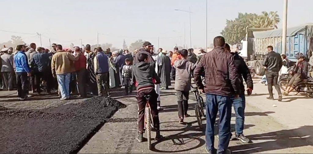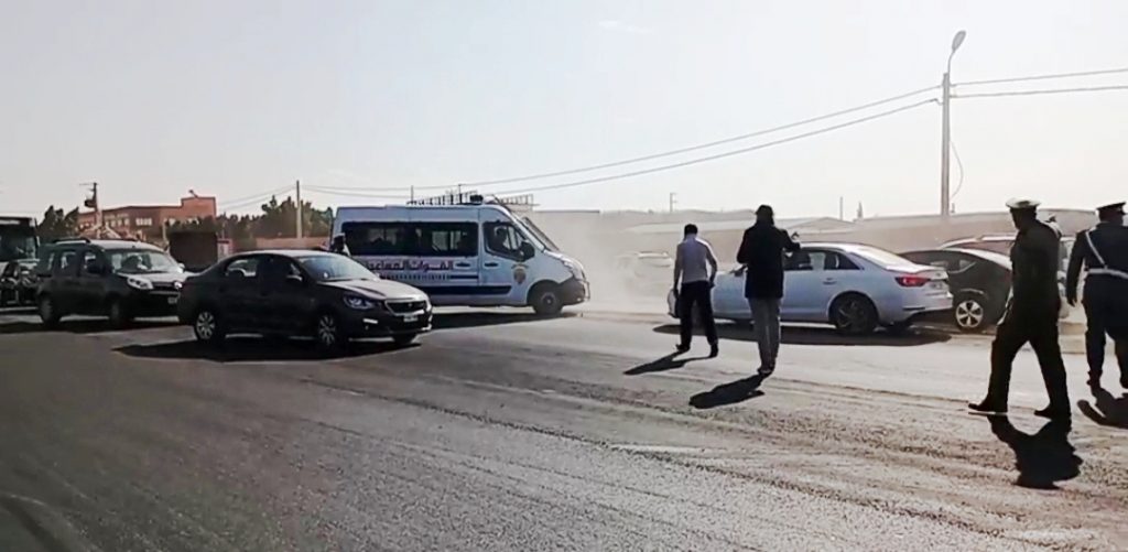 من عائلاتهم دون انقطاع، وقد تسببت مدة تنظيم هذه الوقفة الاحتجاجية في توقيف العمال عن الاستمرار في عملية تعبيد الطريق، حيث وصلت أشغالها مدخل دوار القايد، كما تمت عرقلة عمليتي السير والجولان بالنسبة لمستعملي الطريق من سيارات وشاحنات ودراجات نارية وعادية، مما عجل بحضور رجال درك المركز الترابي للدرك الملكي، و رجال القوات المساعدة من تامنصورت، وأعوان السلطة المحلية، ما إن علموا بخبر تنظيم هذه الوقفة الاحتجاجية، وقد حاول موظفان مشرفان على أشغال تعبيد هذه الطريق من موظفي المديرية الإقليمية للتجهيز والنقل واللوجستيك والماء، إقناع المحتجين بوقف هذه الوقفة الاحتجاجية،