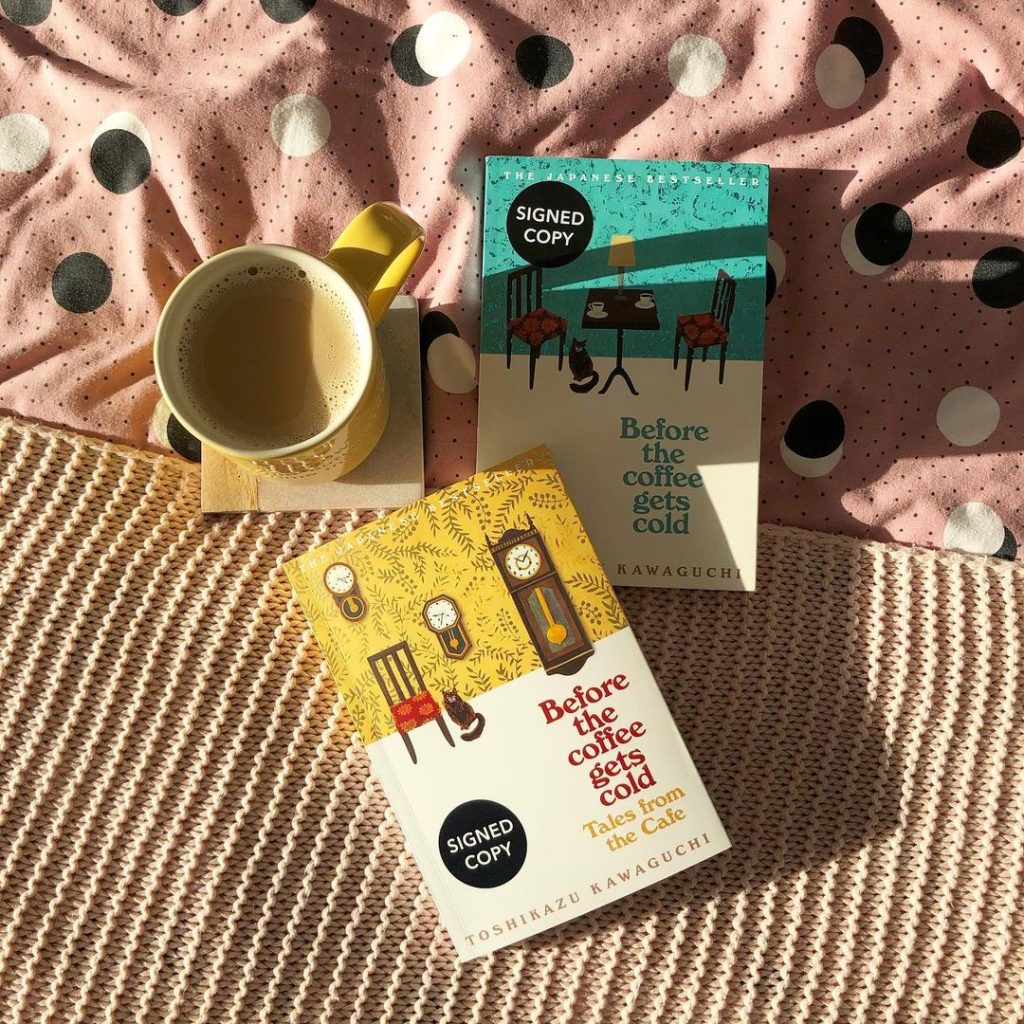 عنوان لرواية في ثلاثة أجزاء للروائي الياباني ” توشيكازو كواغوشي” ، ترجم منها لحد الآن الجزء الأول( قبل أن تبرد القهوة)، والجزء الثاني( حكايات من المقهى)، بينما الجزء الثالث ‘(أمام التذكر) لم يترجم بعد.تقوم النواة المركزية للعمل على فكرة السفر عبر الزمن، في أقصر مدة تتحدد في الوقت الذي سيبرد فيه فنجان القهوة، في مقهى يقع بزقاق خلفي صغير بطوكيو،إضافة إلى فضائه الغرائبي، إذ لاتوجد به نوافذ مما لايسمح بتبين الوقت، تزينه ثلاث ساعات، كل واحدة تشير إلى توقيت مختلف، وقد خصص كرسي محدد لهذه المهمة، كما يقدم إلى زبنائه قهوة مخمرة، مع هذه الخدمة الفريدة التي تقوم على أربعة شروط: